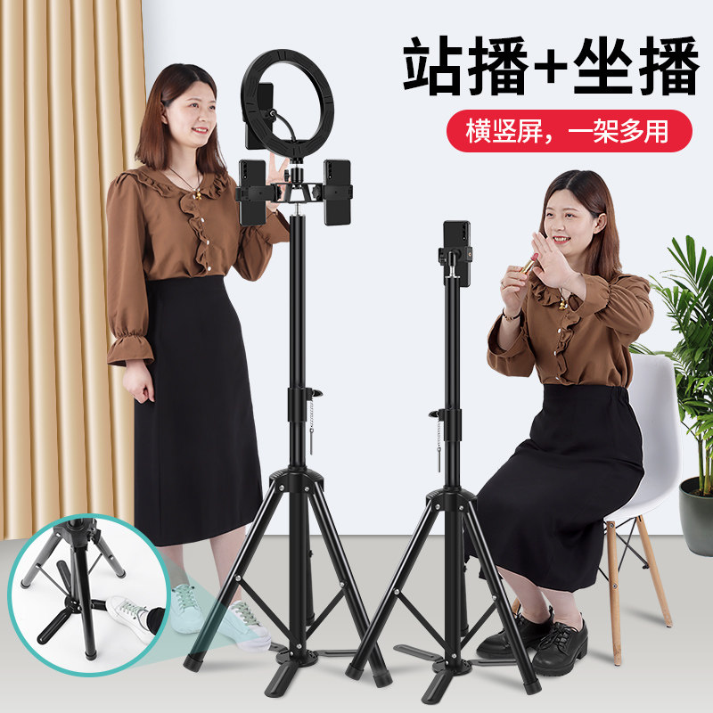 手机拍摄支架直播专用自拍杆三脚架落地式多功能支撑架通用捭机架户外便携伸缩升降网课考研复试架子三角支夹
