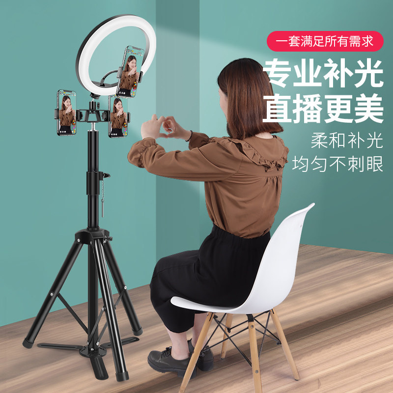 加粗手机直播支架带补光灯光可伸缩折叠主播多机位三机位三脚架网红多功能落地式拍视频专用打光灯