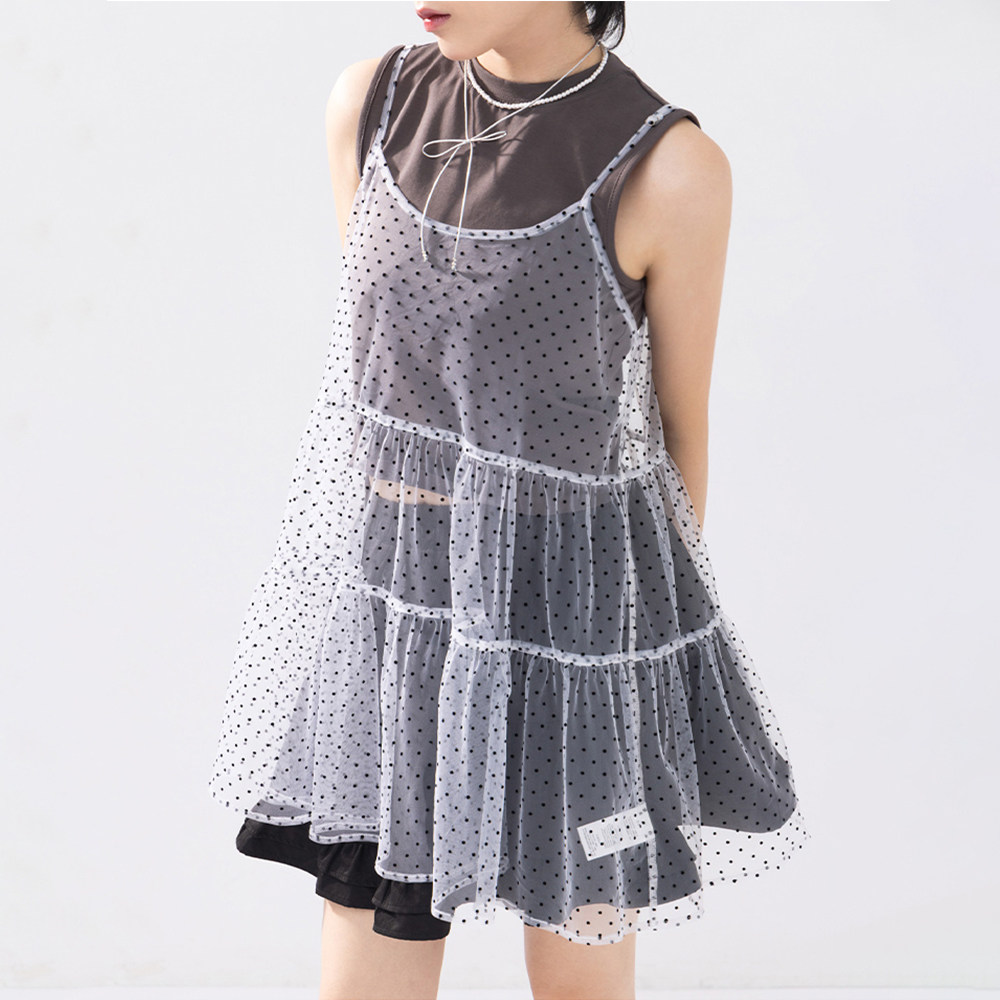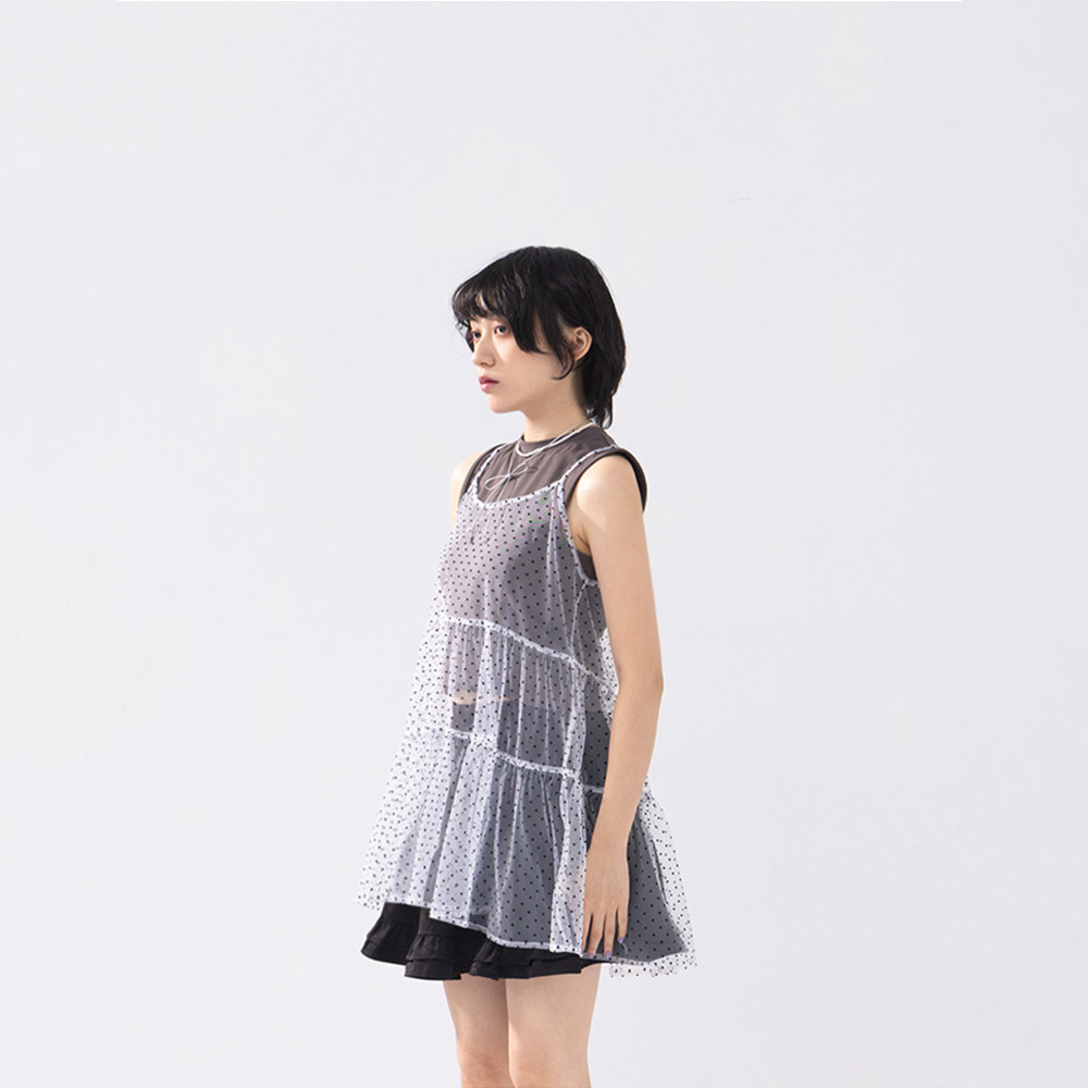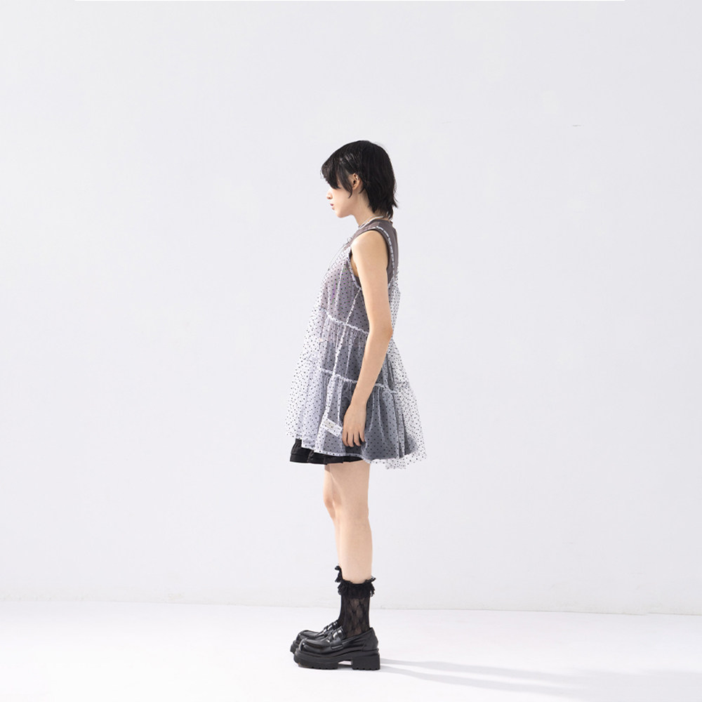 QUEENSHOP 2025秋冬新品女装点点蛋糕剪接造型细肩罩衫01099122