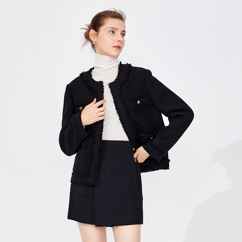 COCOBELLA静奢风珠片花纱毛呢外套短款廓形小香风西装WL507