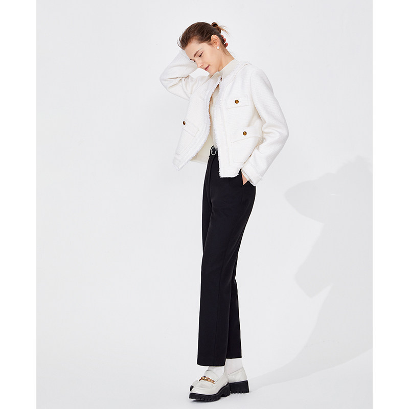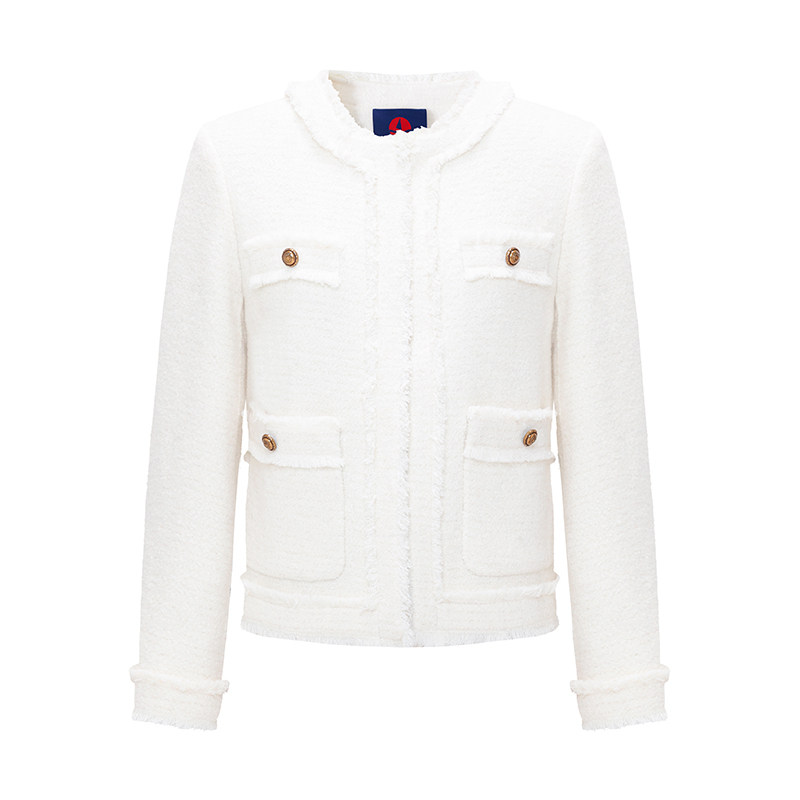 [羊毛]Navigare意大利小帆船白色小香风呢大衣女春季休闲外套