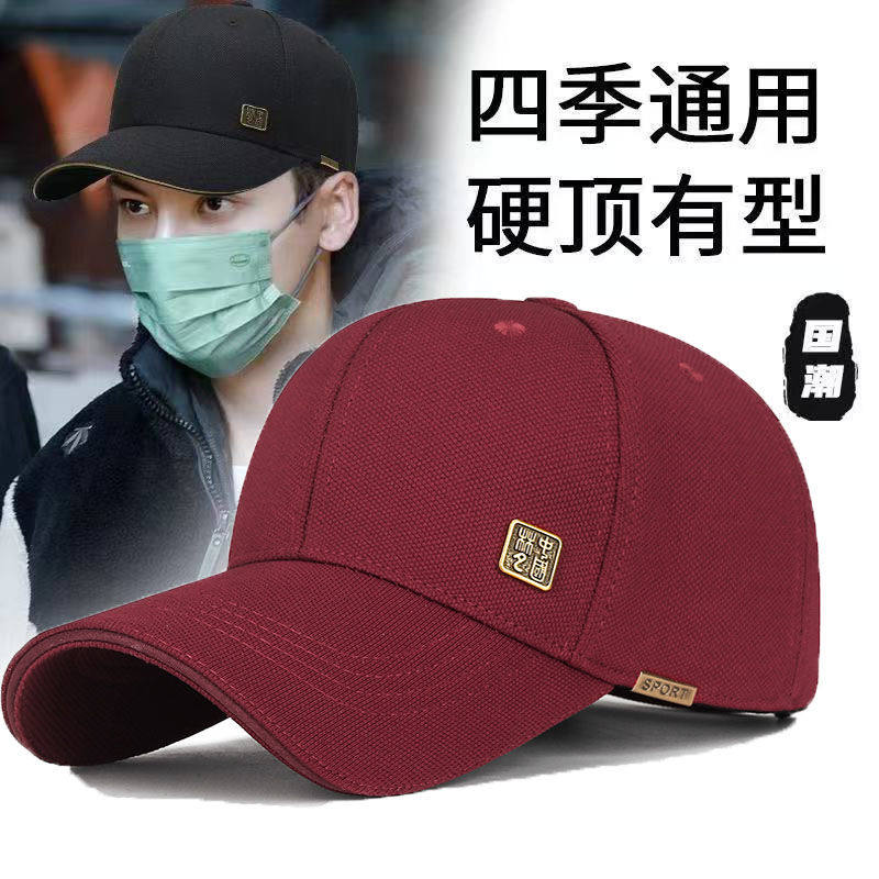 帽子大头新款夏季显脸硬顶休闲棒球帽防晒男士遮阳时尚保暖鸭舌帽