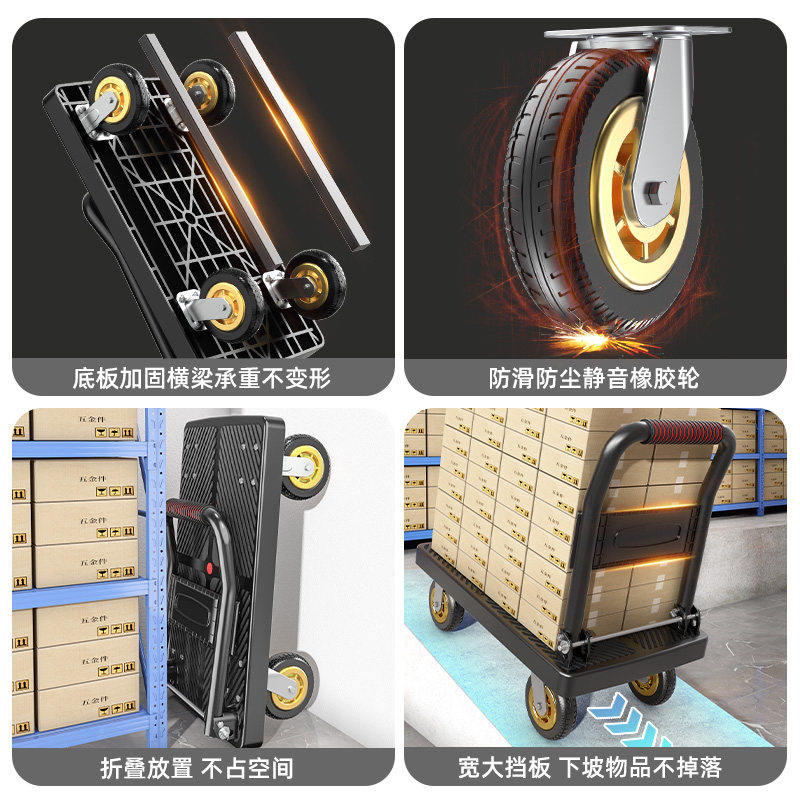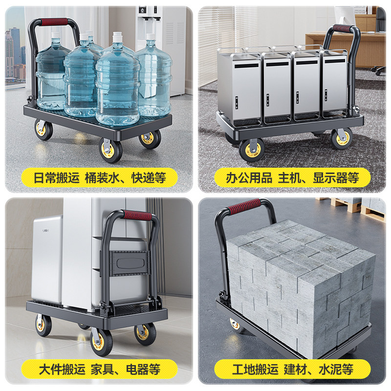 小推车拉货手推车平板车家用拖车便携静音快递小拉车可折叠搬运车