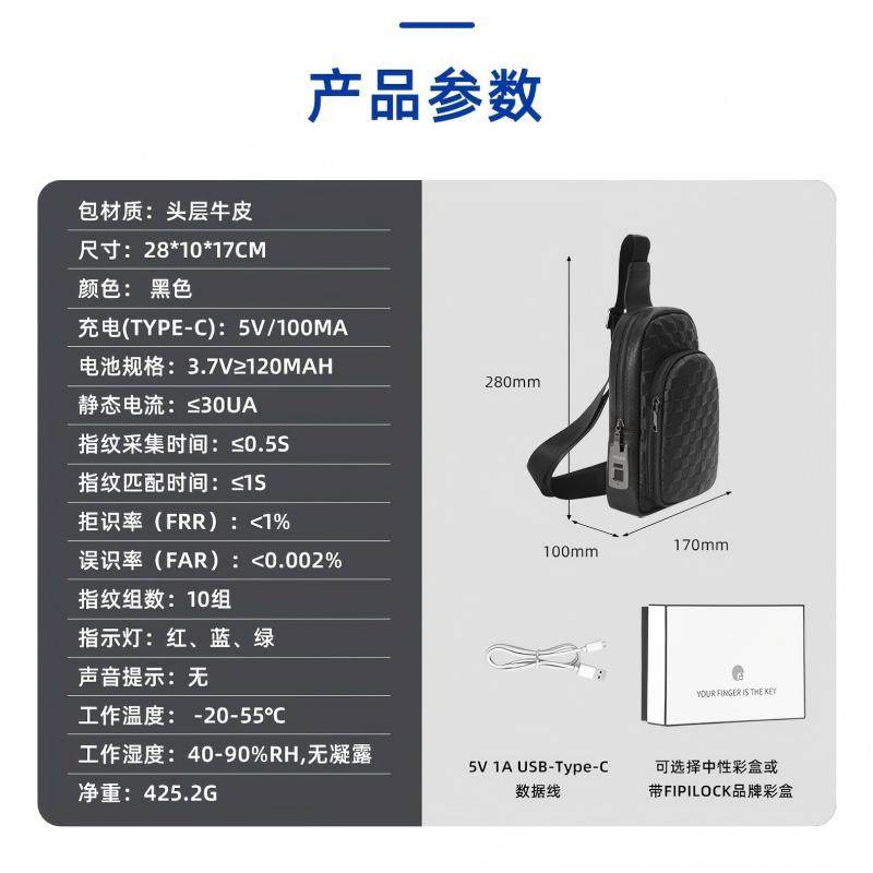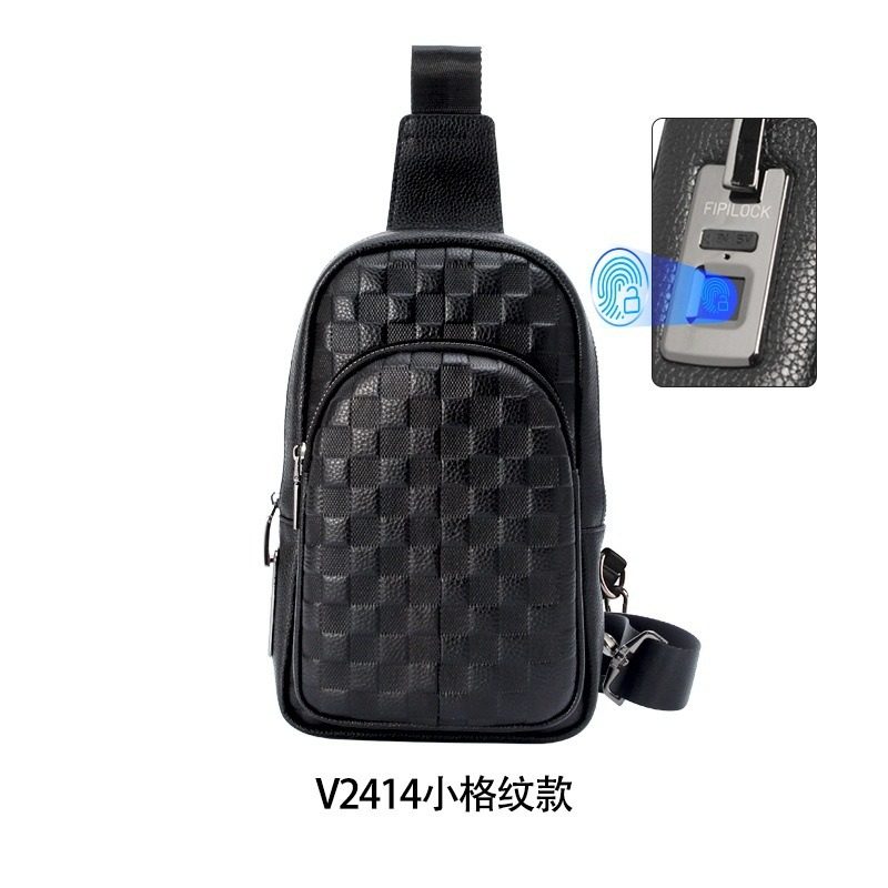 头层牛皮男士胸包新款真皮单肩斜挎包指纹锁防盗男高级感大容量