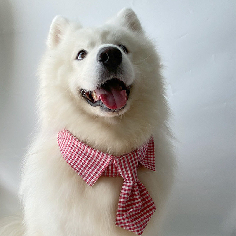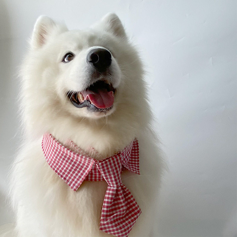 宠物狗狗红色格子领结萨摩耶拉布拉多大中小型犬领巾领结拍摄装饰