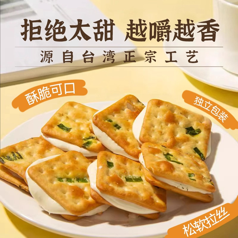 aji牛轧夹心苏打饼干单独小包装香葱黄油咸味休闲小零食牛乳葱香