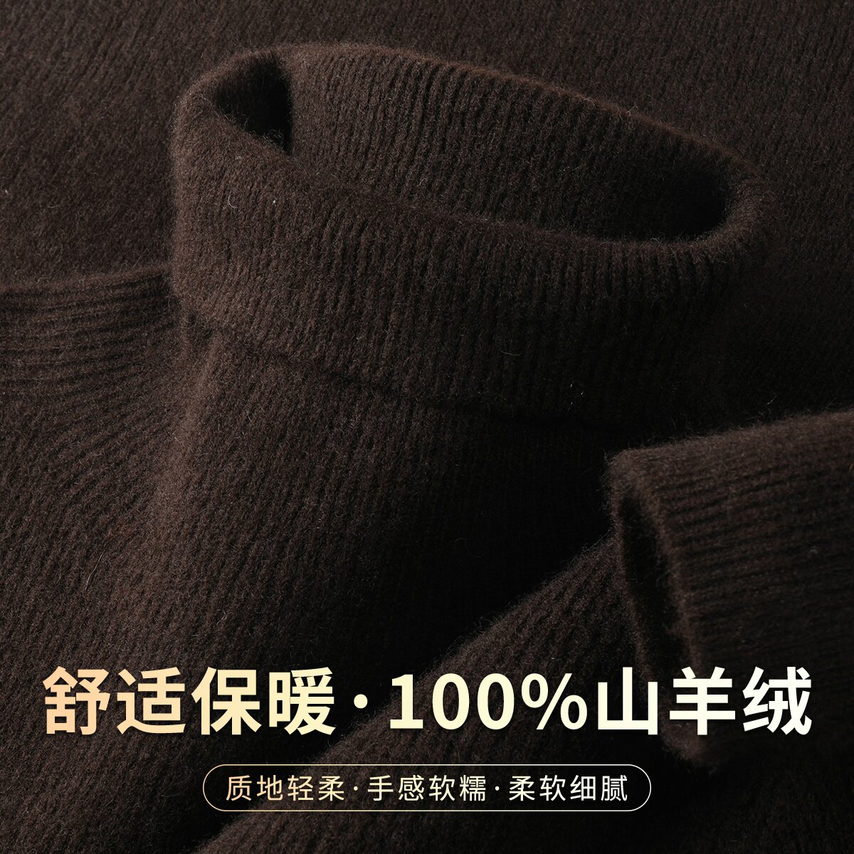 100%拉绒山羊绒+绵羊毛无缝一体亲肤柔软针织拉绒圆V领宽松打底衫