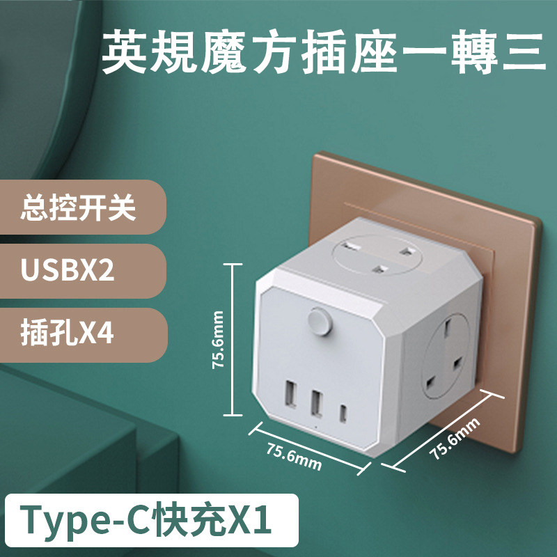 13A英规一转三魔方插座双USB排插type-c快充英式美规插座扩展插苏