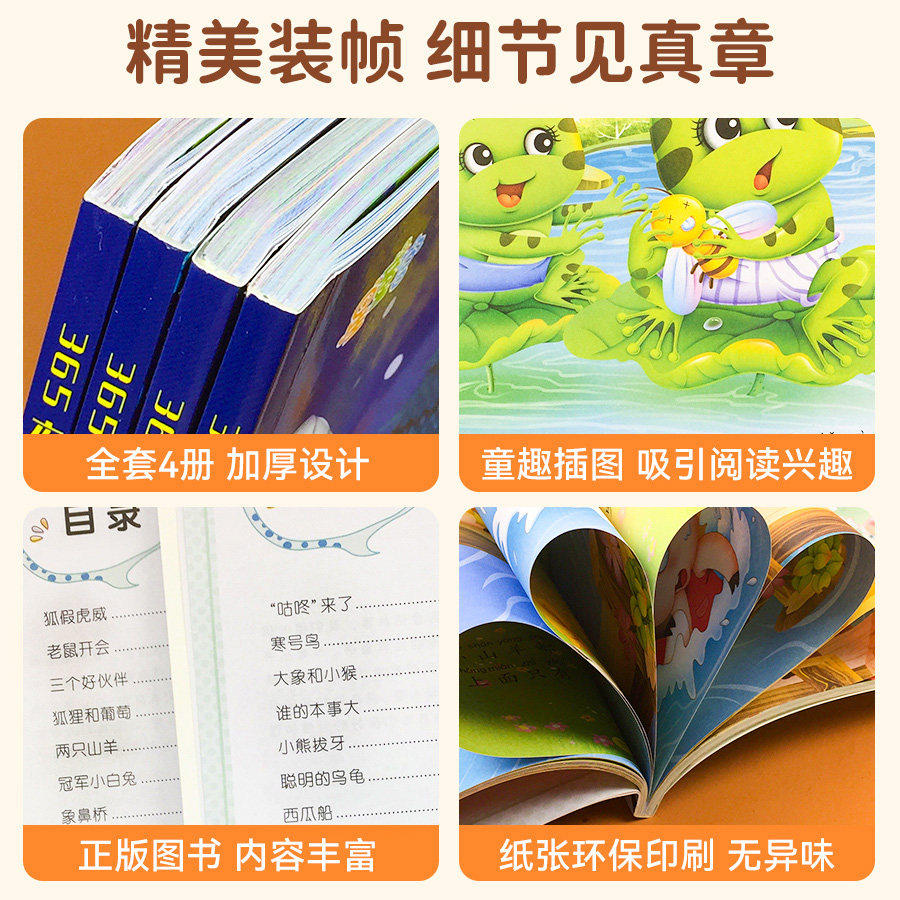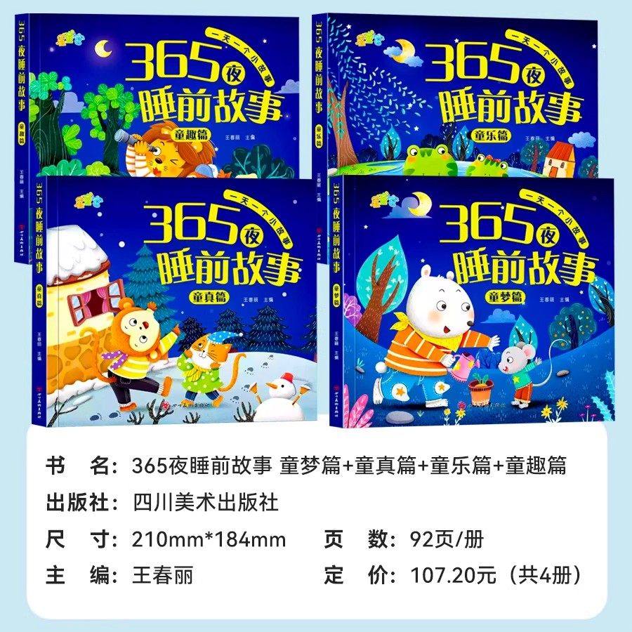 365夜睡前故事绘本3到6岁宝宝睡前故事书全4册婴儿早教启蒙儿童故事书绘本有声伴读幼儿园大中小班认知宝宝幼儿绘本经典必读故事书