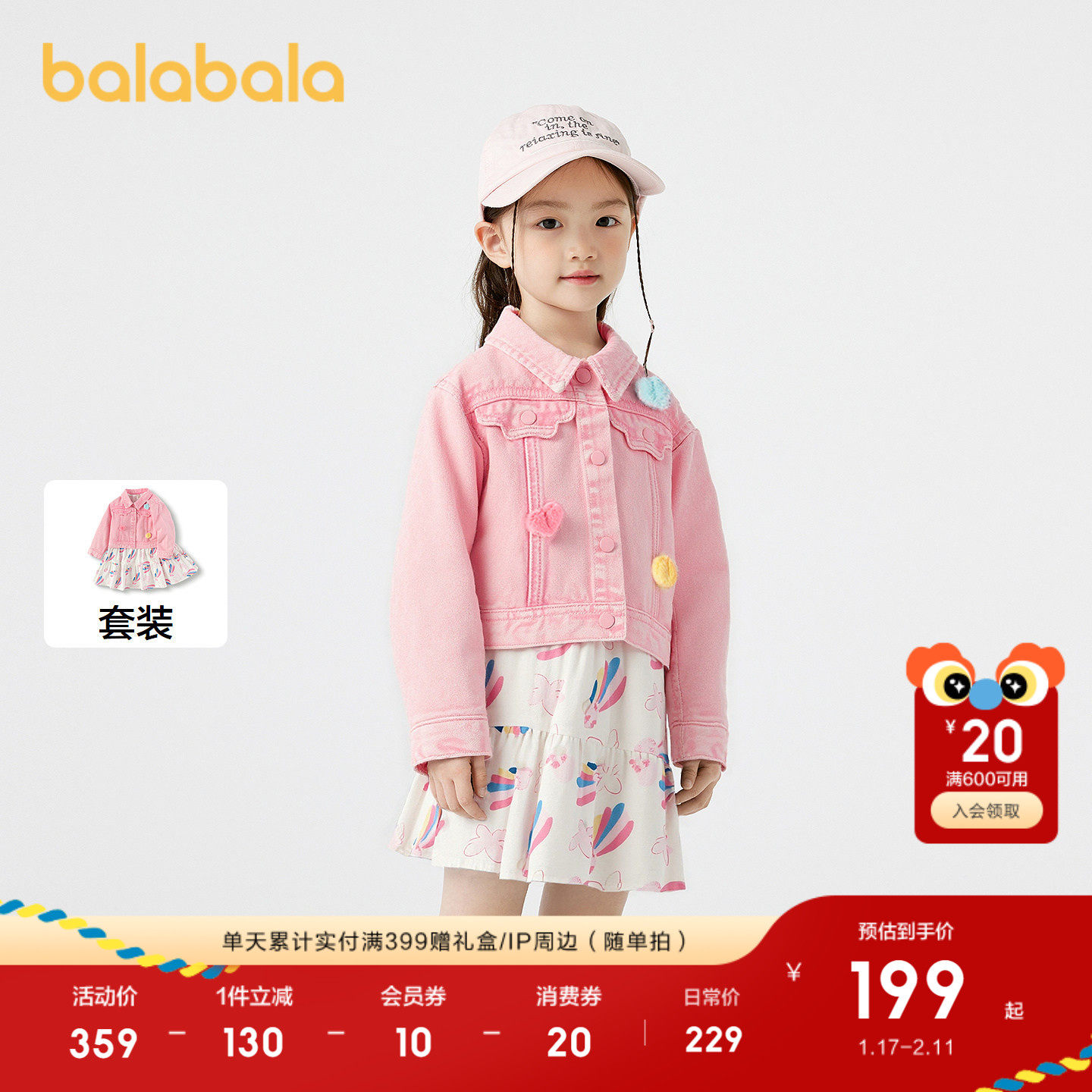 巴拉巴拉宝宝连衣裙子套装女童短牛仔两件套2025秋装童装儿童甜美