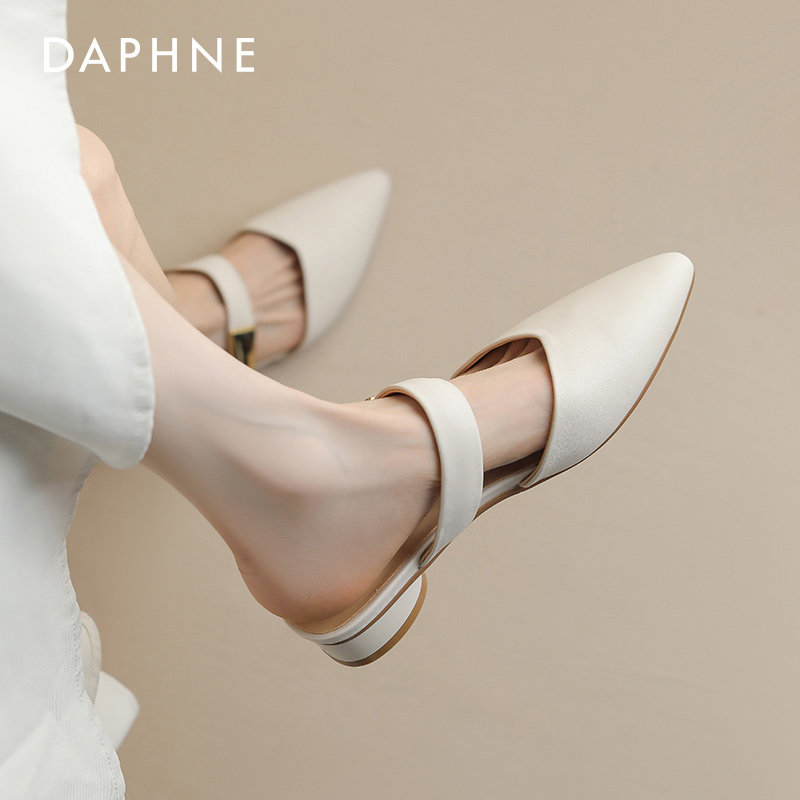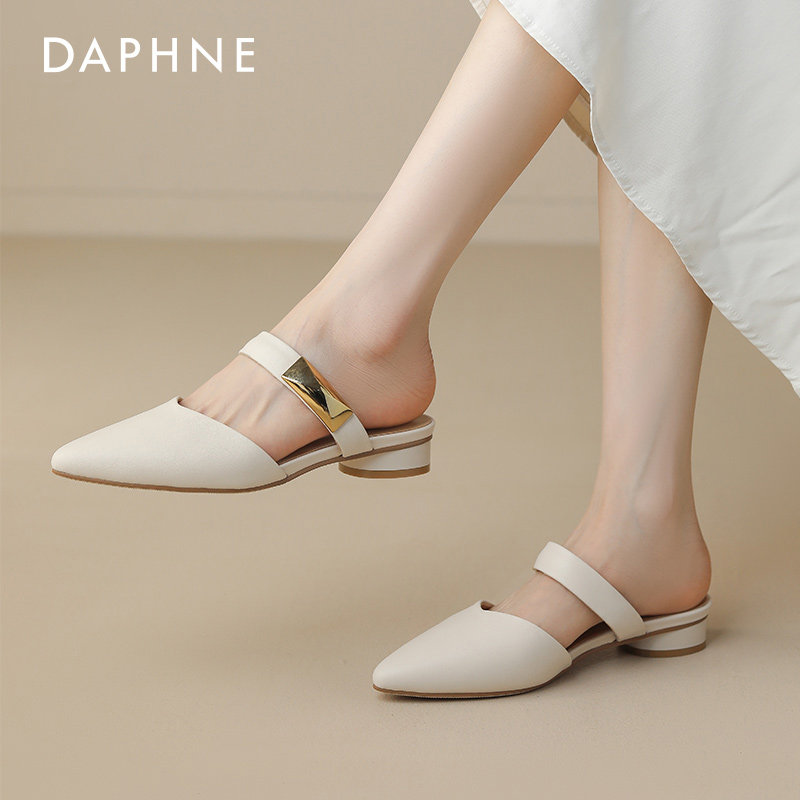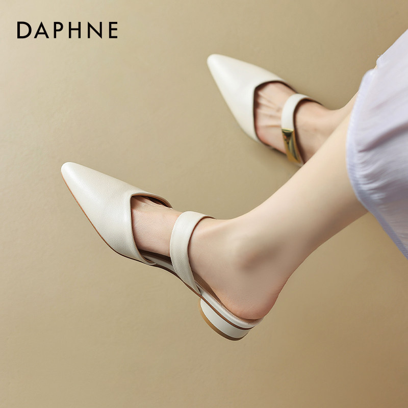 达芙妮包头半拖鞋女2026新款夏季尖头鞋拖单鞋外穿法式平底凉拖鞋