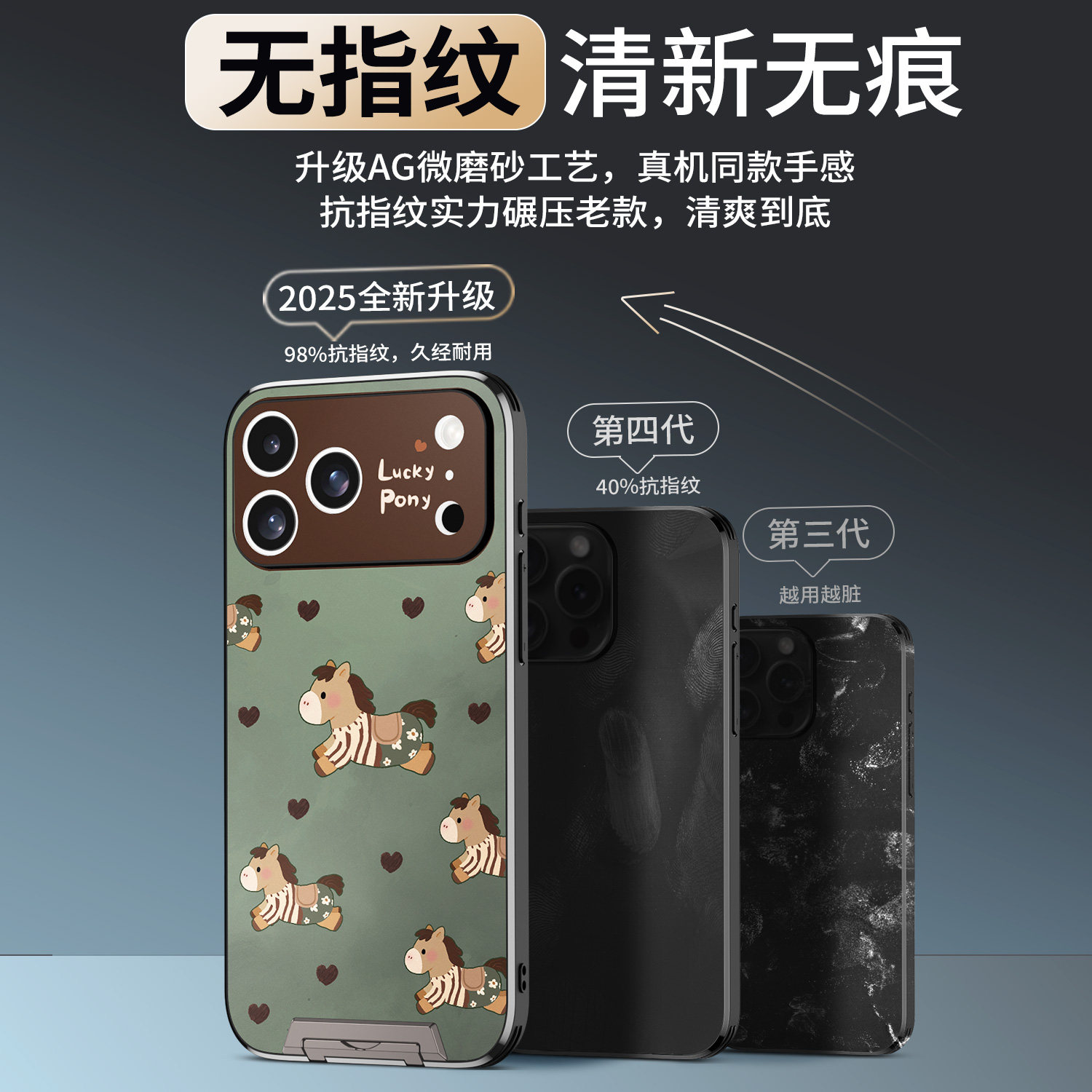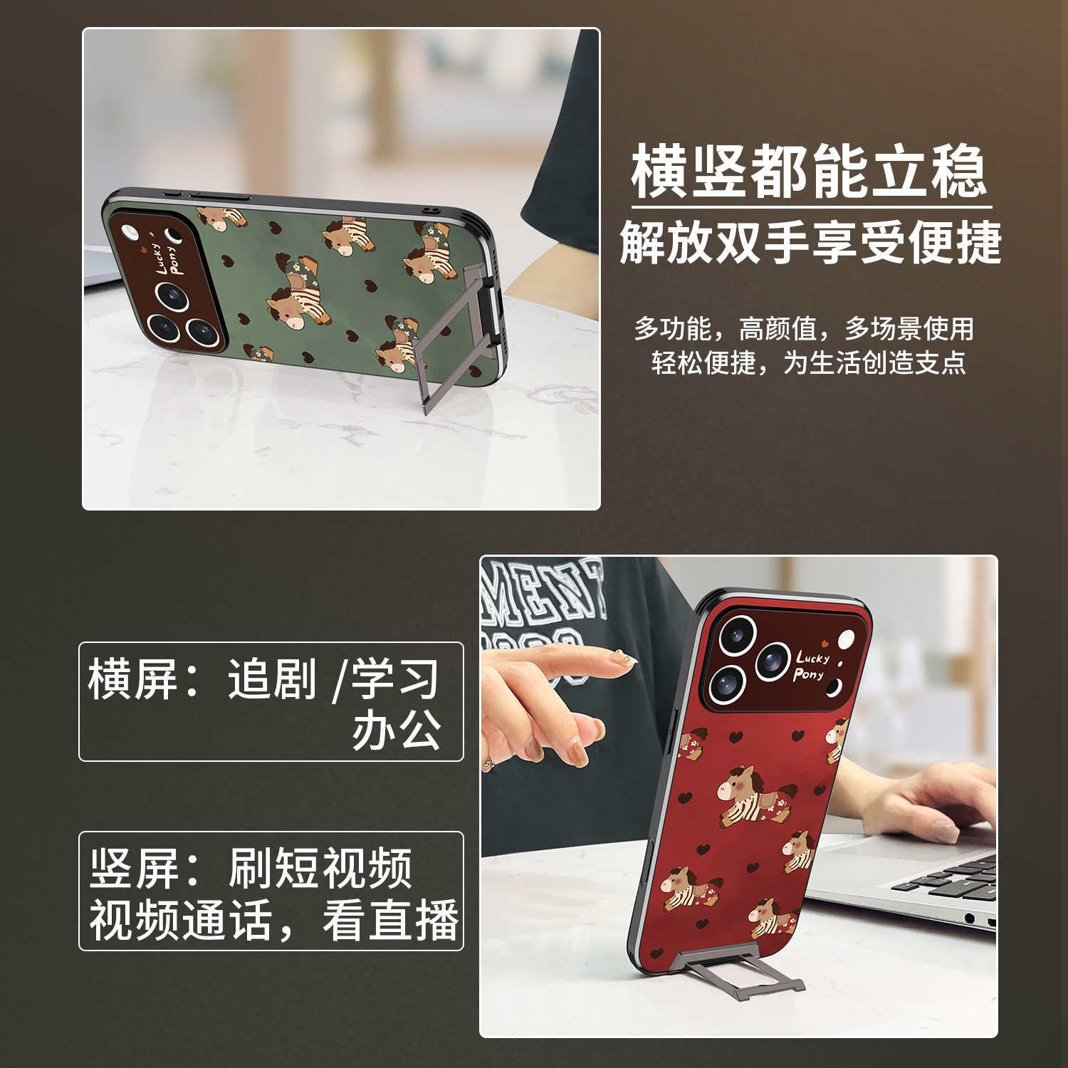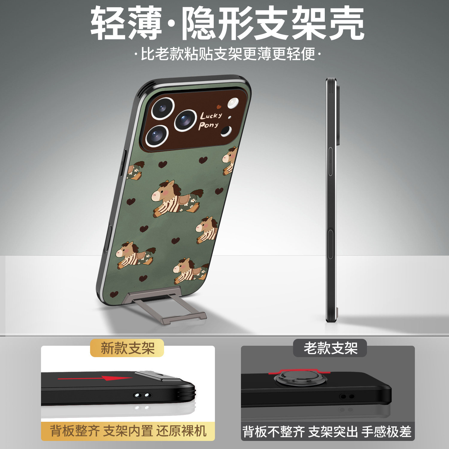 复古小马适用苹果17promax手机壳新年款隐形拉杆支架iPhone16全包防摔保护套pro磨砂15plus男超薄女情侣外壳