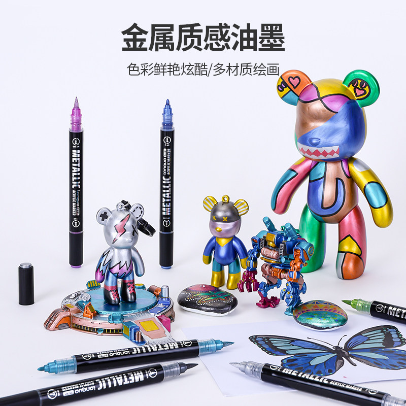 蓝果电镀超级金属彩色马克笔进口防水高达模型机甲笔DIY补色工具手帐装饰荧光细头油漆笔签名速干金属闪光笔
