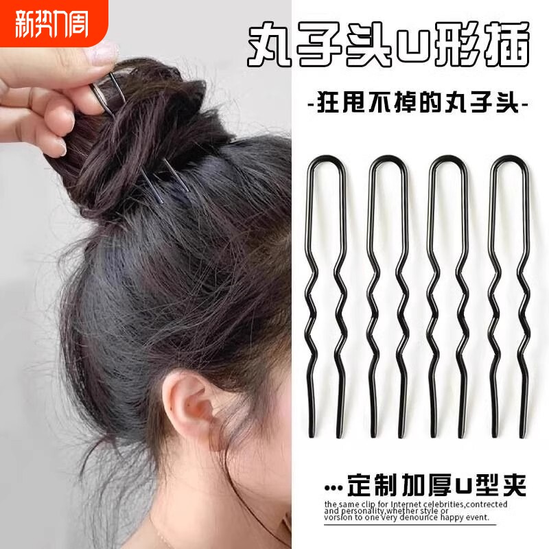 u型夹发夹加粗黑色盘发丸子头固定发钗发饰发卡女影楼造型一字夹