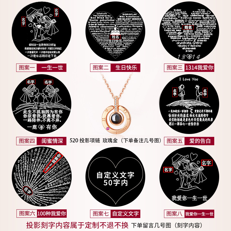 项链高级投影吊坠语言我爱你七夕情人礼物送女友闺蜜生日玫瑰金