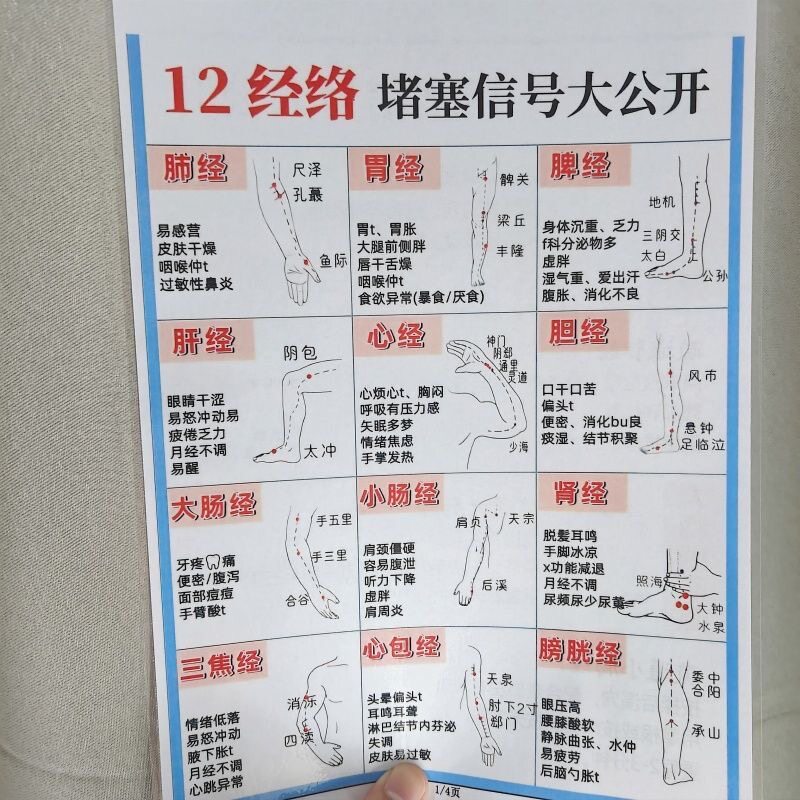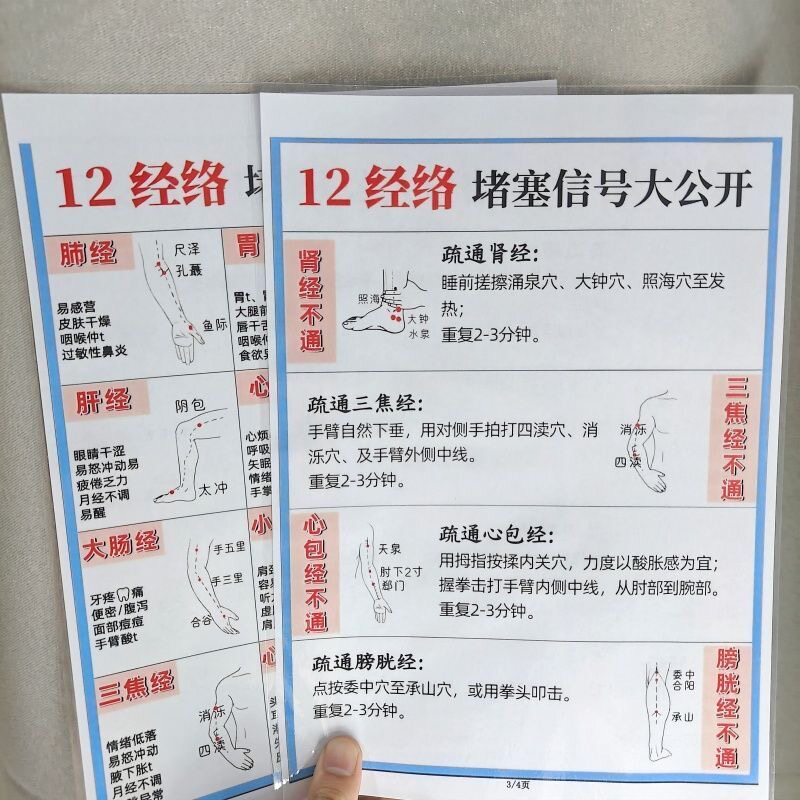 12经络堵塞信号大全把脉不求人中医28脉改善疏通A4塑封挂图认知卡