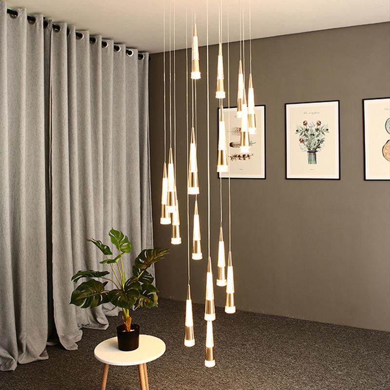 金色楼梯吊灯挑空客厅别墅复式楼挑高旋转楼梯间长吊灯loft公寓灯