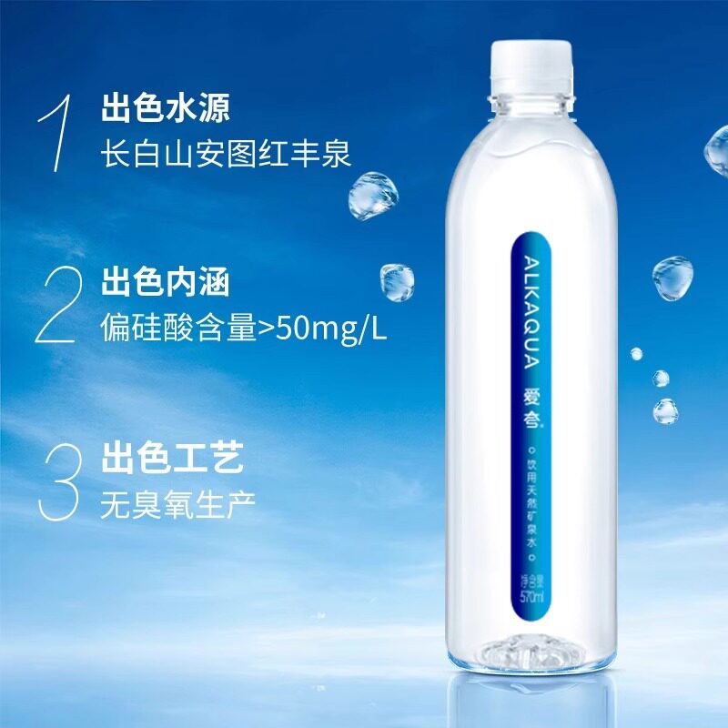 统一爱夸天然矿泉水570ml*24瓶整箱包邮长白山饮用天然水非矿泉水