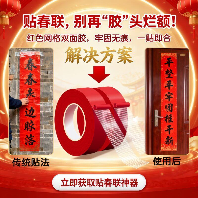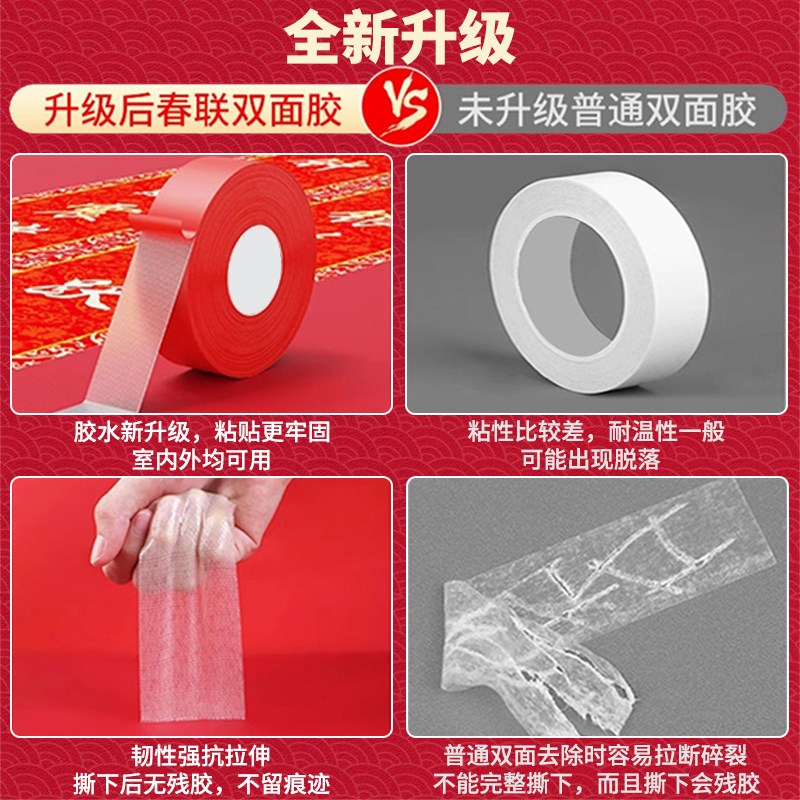 春联胶贴对联专用胶家用高粘度自粘不留痕通用瓷砖水泥墙面装饰婚庆红色喜庆春联门联胶带年画摆件通用双面胶