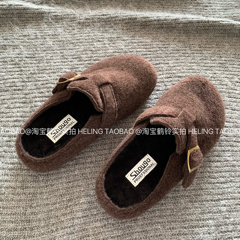 叁叔家~内增高勃肯鞋女加绒秋冬保暖毛毛半拖外穿厚底博肯鞋