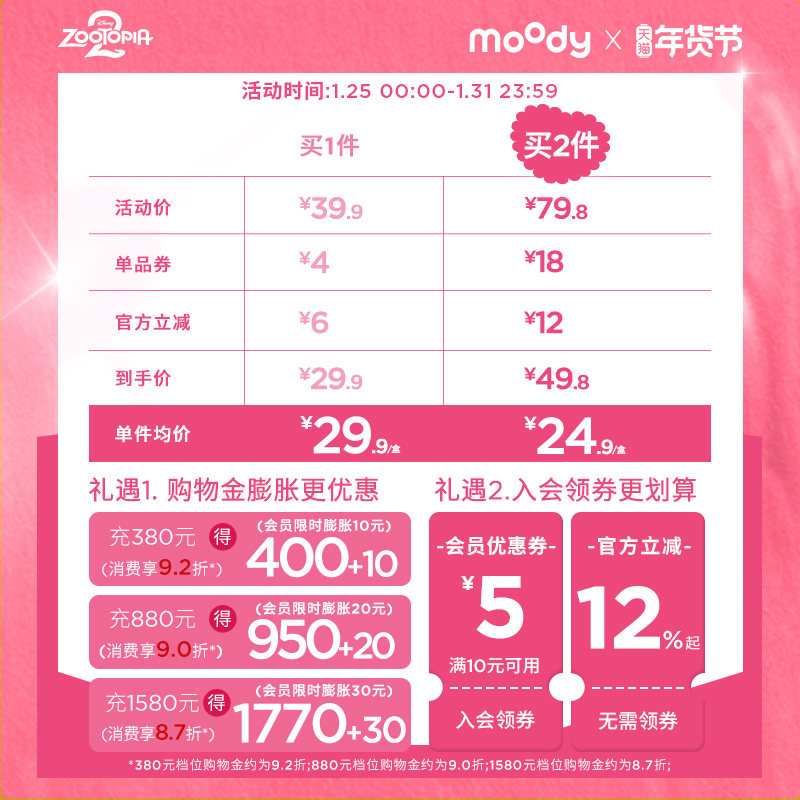 moody美瞳半年抛疯狂动物城2尼尼粉色彩色隐形眼镜官方正品1片