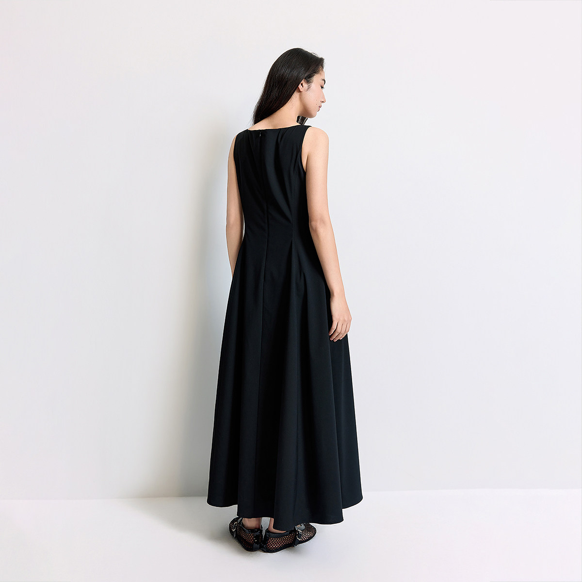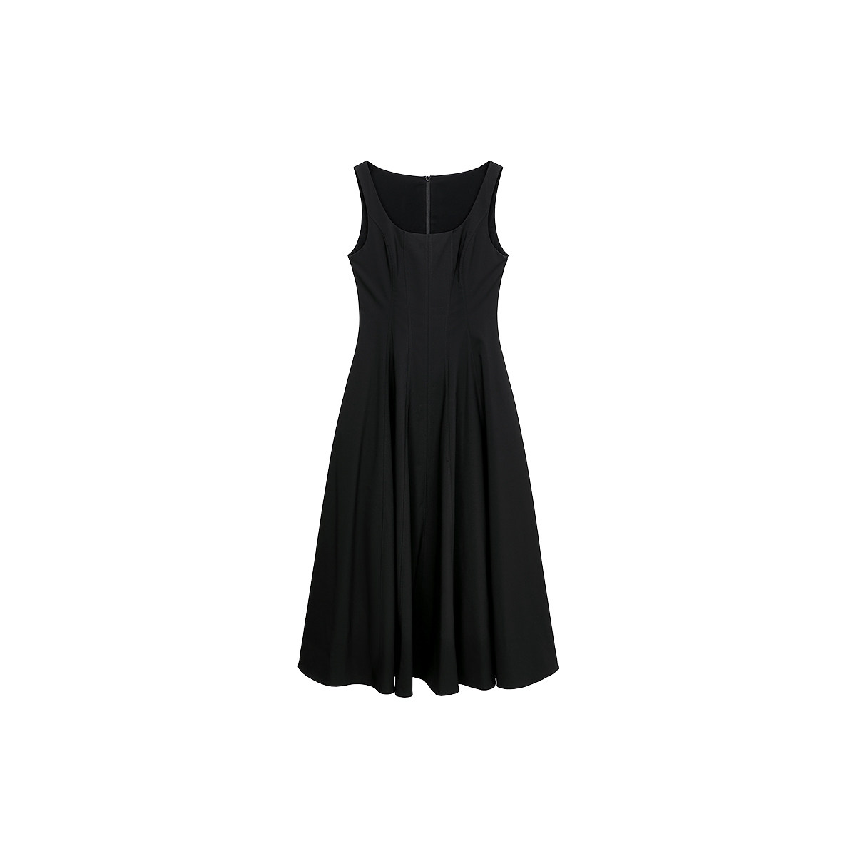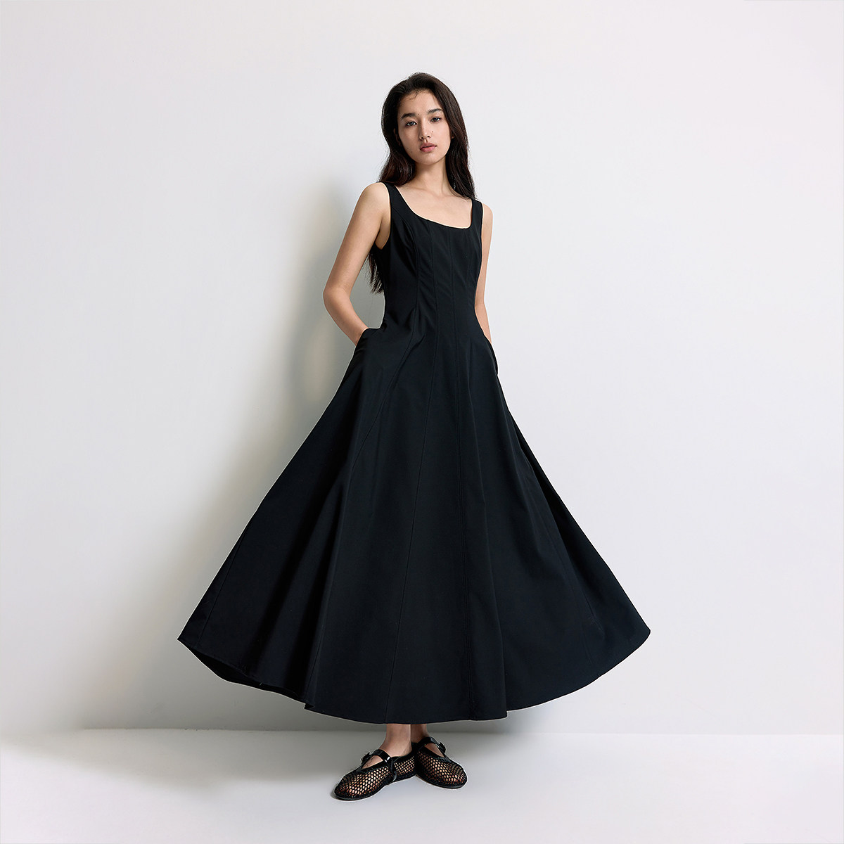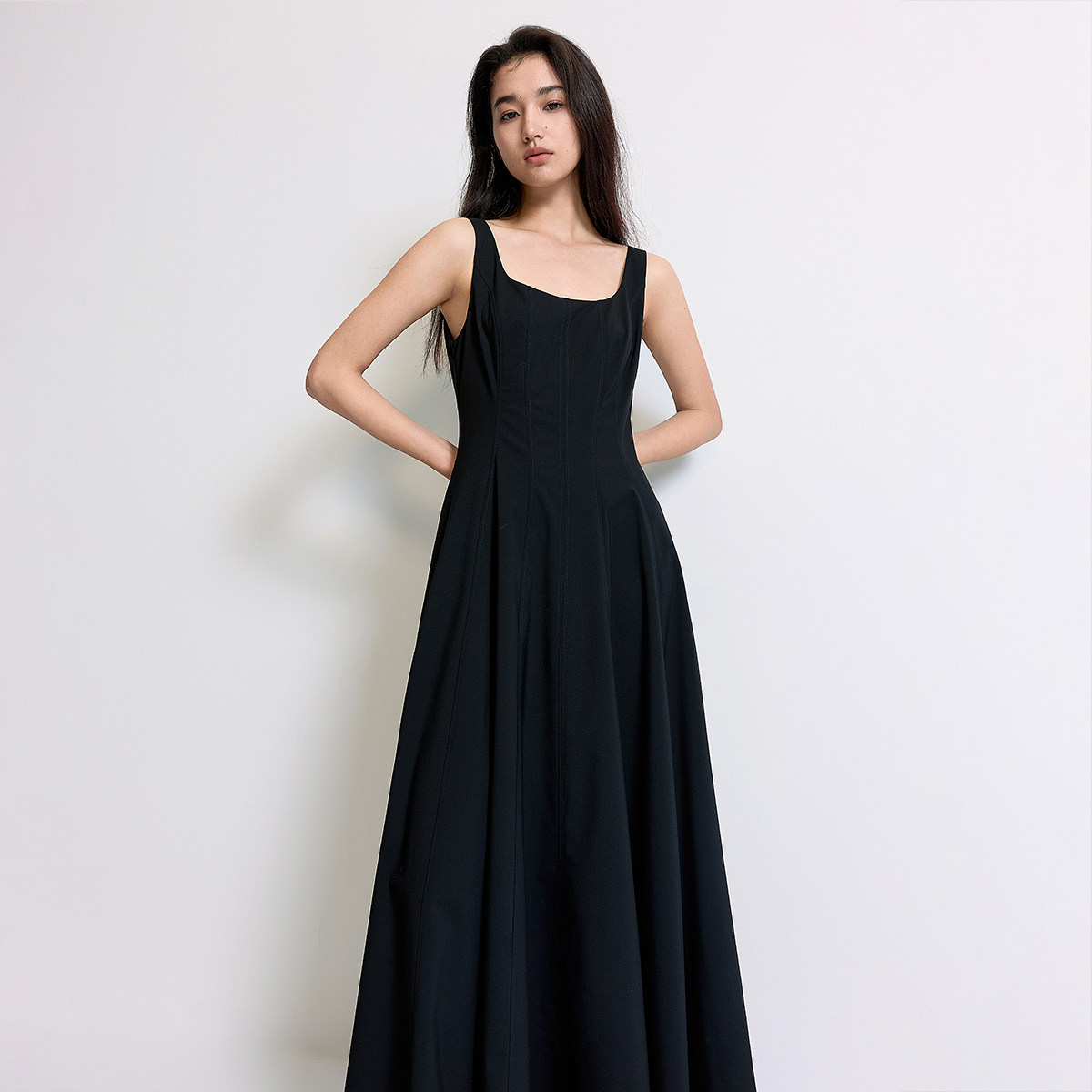 【特享折扣】欧时力 方领吊带连衣裙女长裙A字小黑裙复古2025夏新