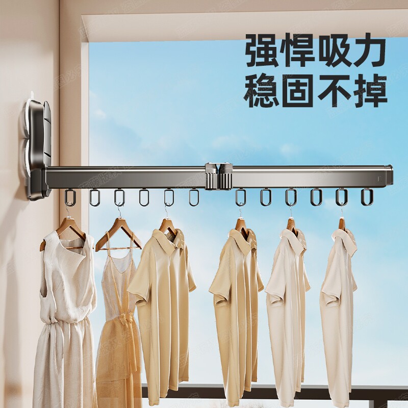 吸盘折叠晾衣架阳台晾衣杆挂衣架飘窗晾衣神器玻璃浴室晾晒袜子