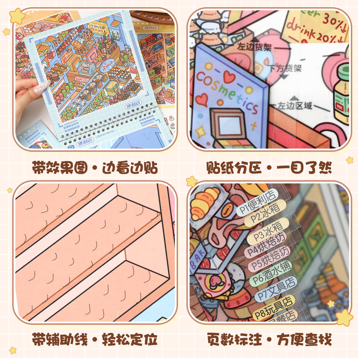新款筑梦3d立体造景贴纸微缩场景合集本 大号版diy手工小屋手账贴儿童益智玩具素材贴画解压大版3D手账装饰贴