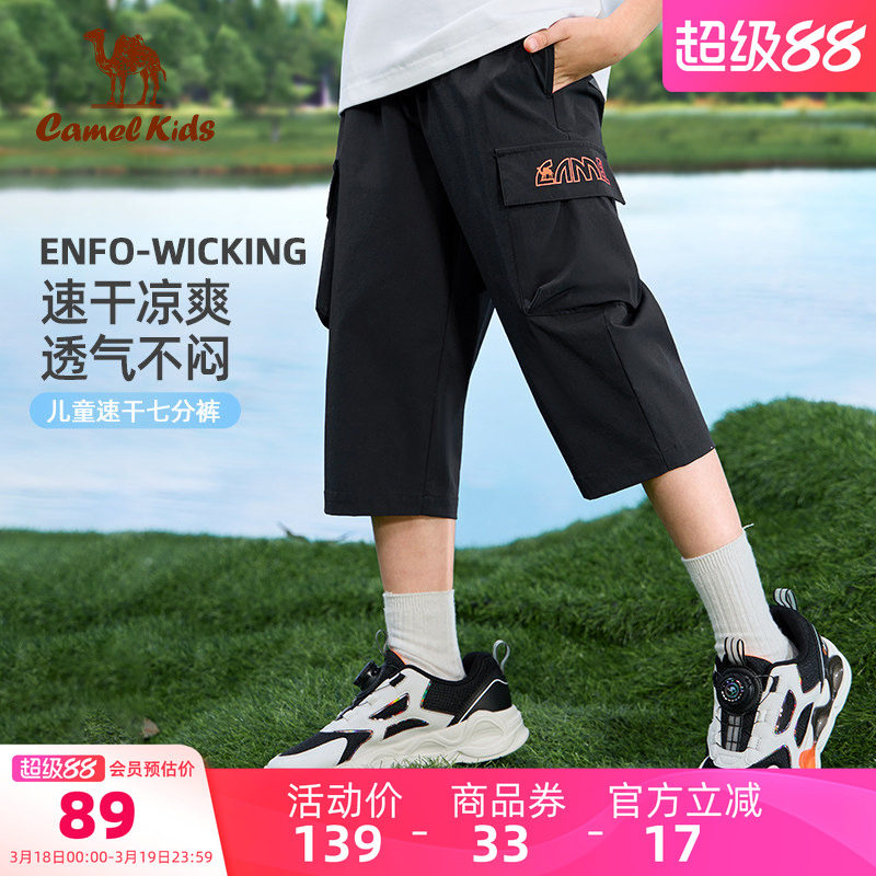 【清仓】小骆驼夏装男童冰丝速干裤薄款夏男孩七分裤儿童运动裤子
