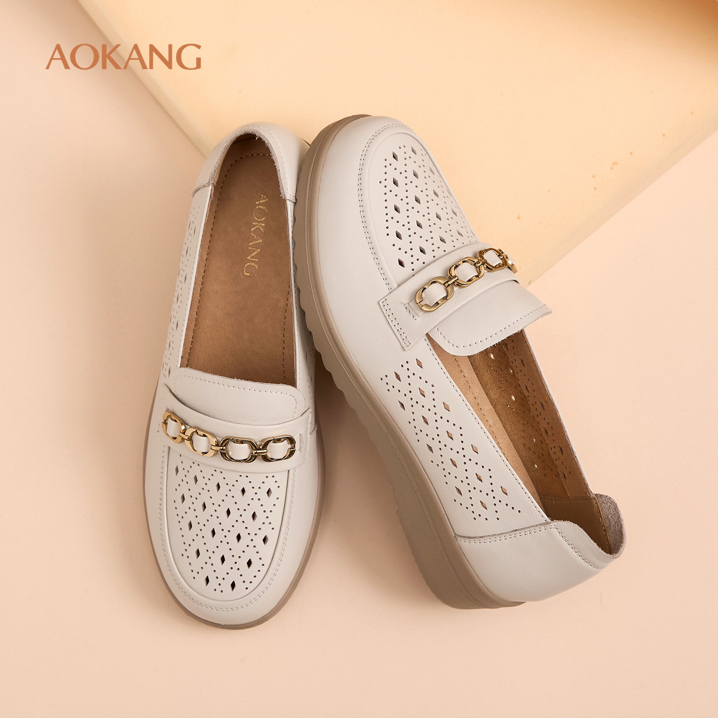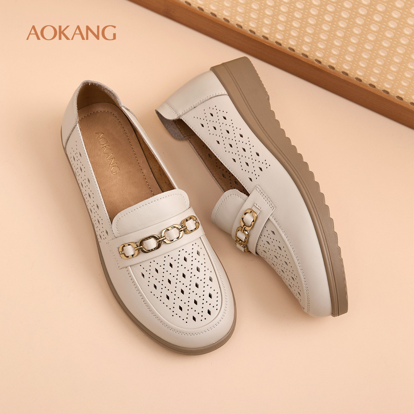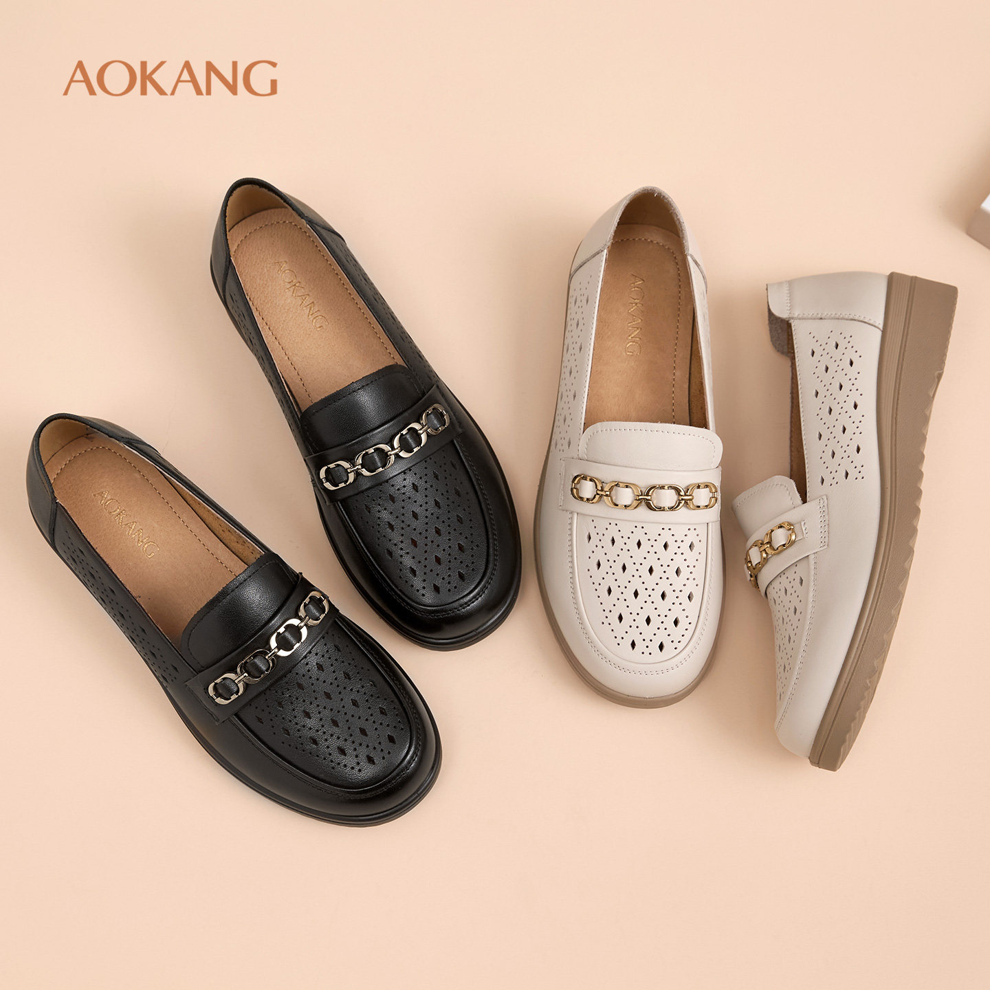 奥康 女鞋2026春夏新款软底不累脚镂空单鞋真皮舒适凉鞋N