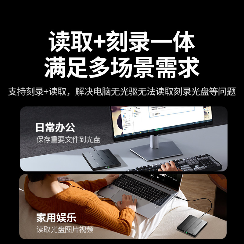 绿联外置光驱刻录机dvd光盘读取器笔记本台式电脑外接usb播放器cd