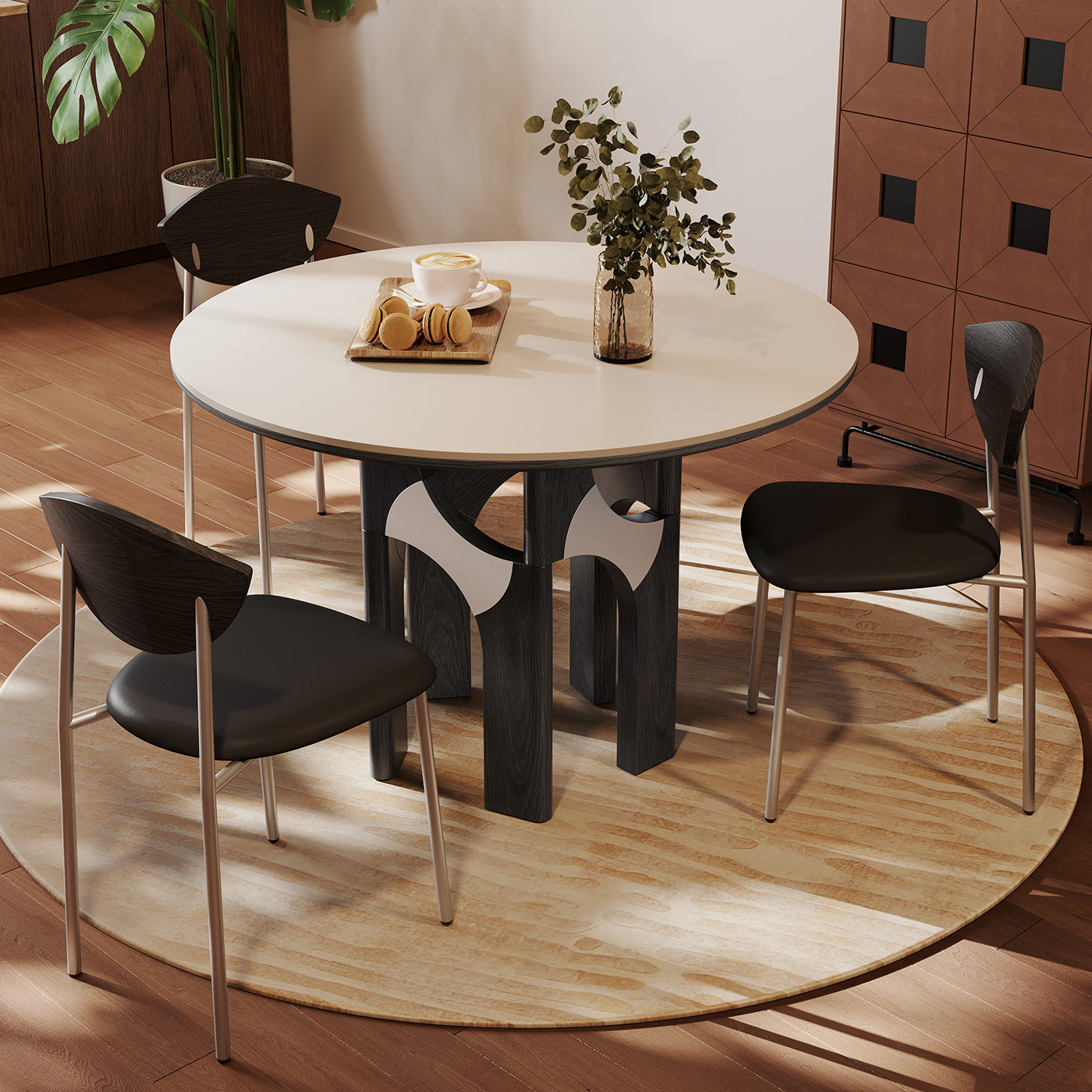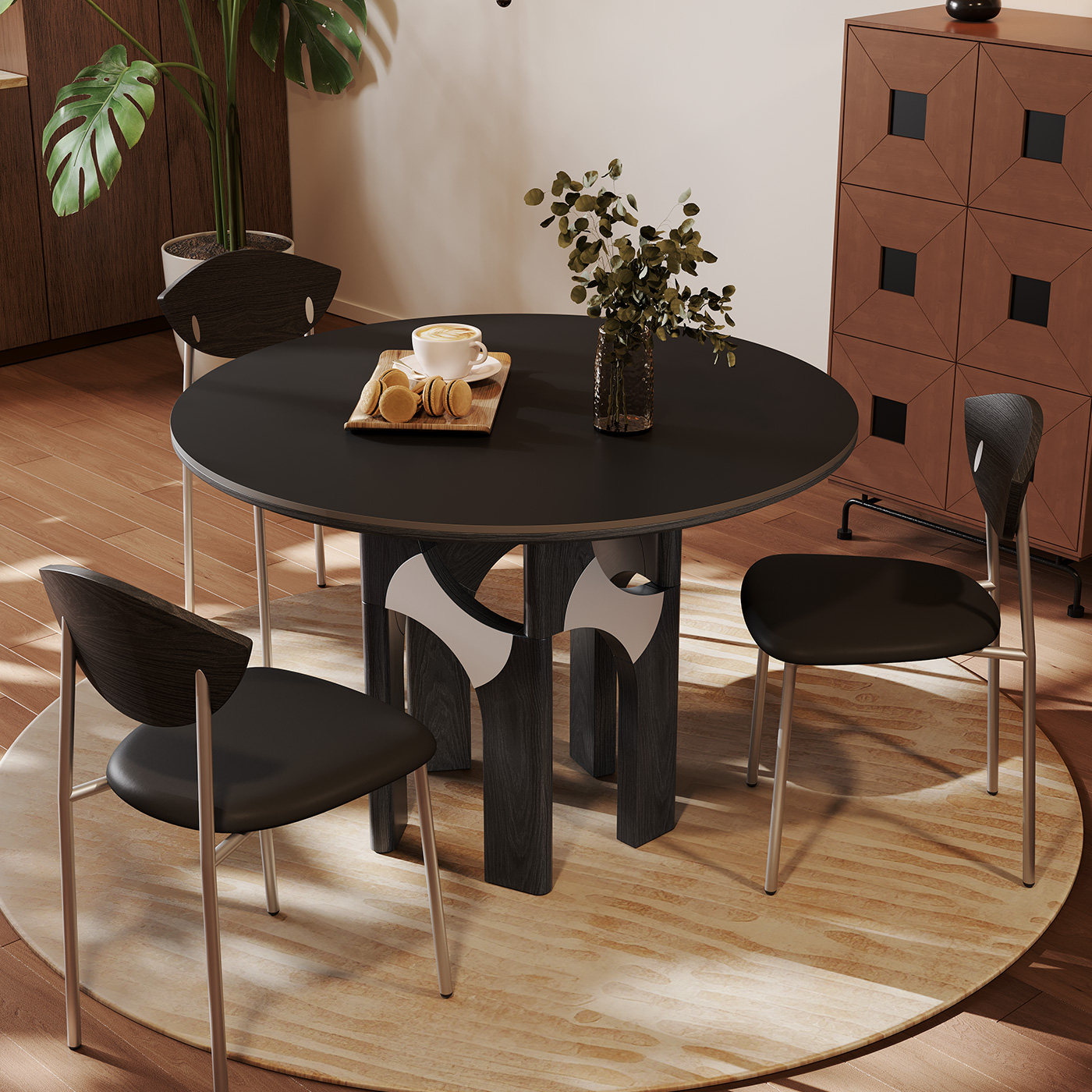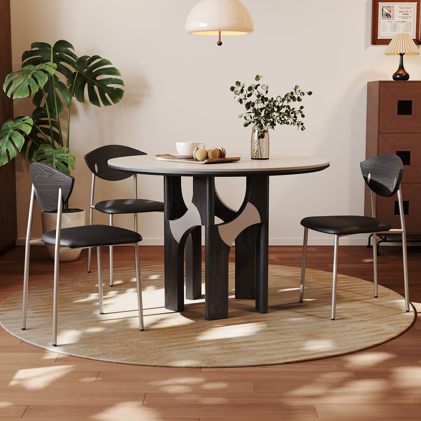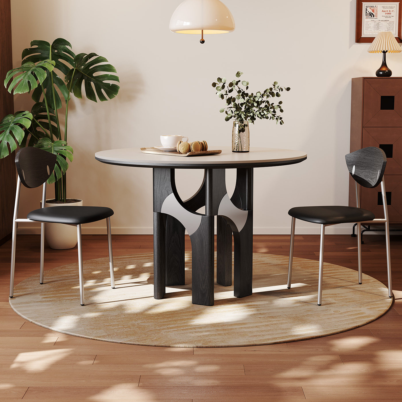 奥古斯特复古岩板餐桌圆形家用1.2米小户型意式极简黑色实木餐桌