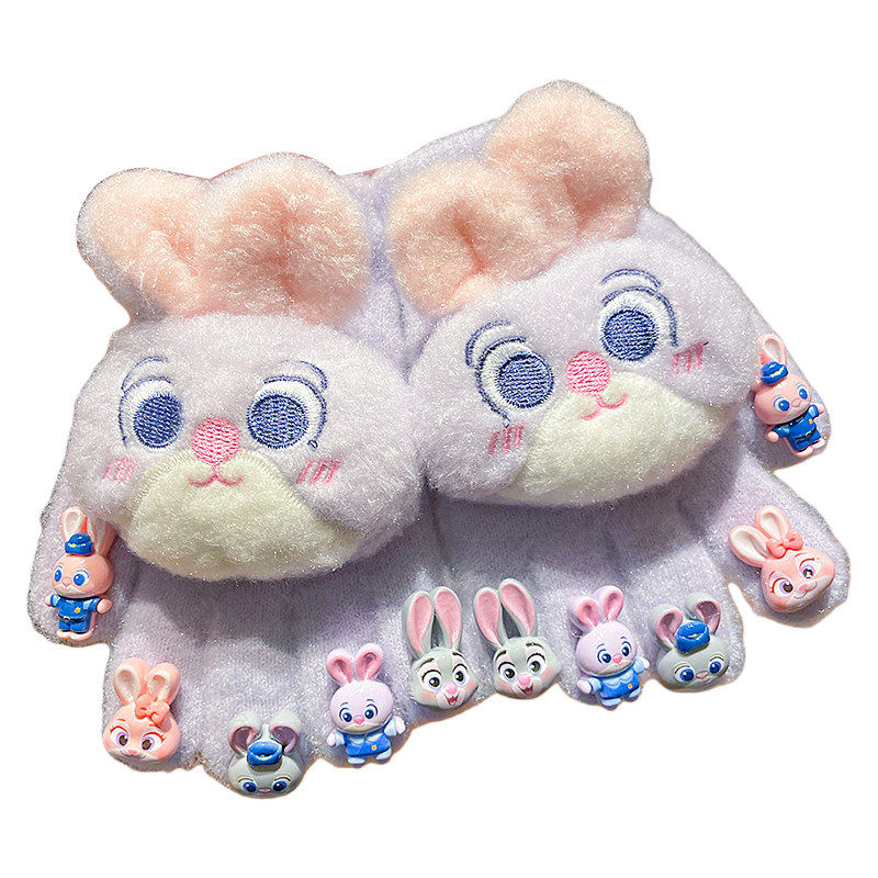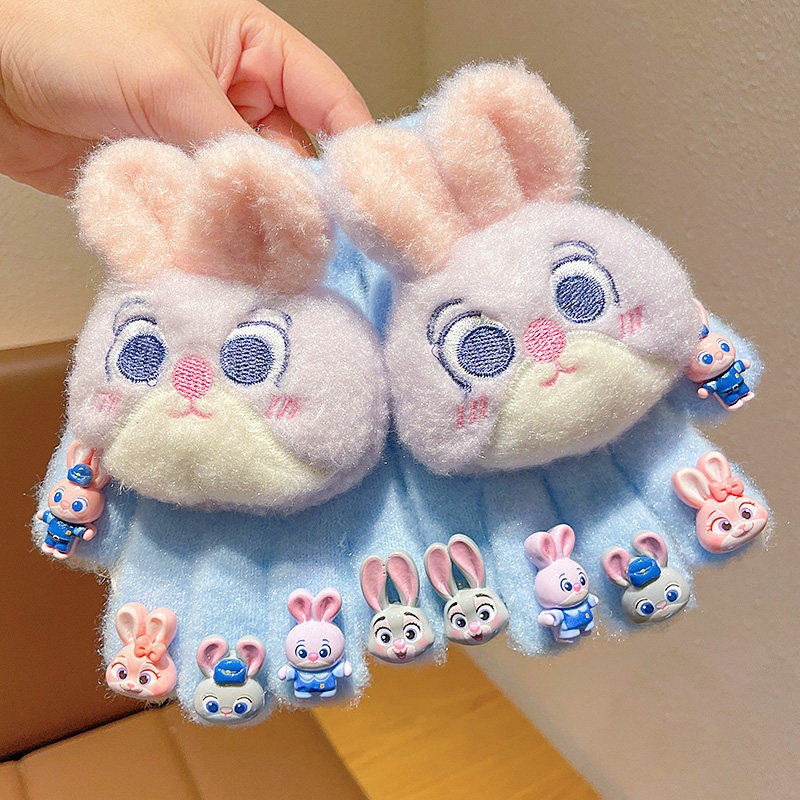 儿童手套兔子警官美甲卡通小女孩冬季全指手套加绒加厚防风保暖男