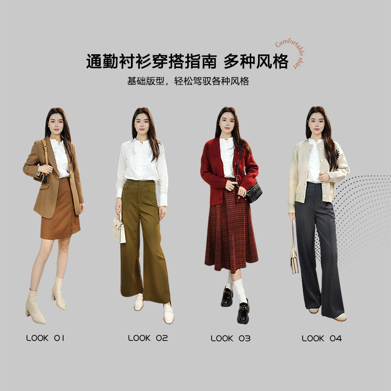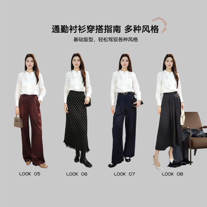 荷叶边立领,舒适亲肤,职场通勤