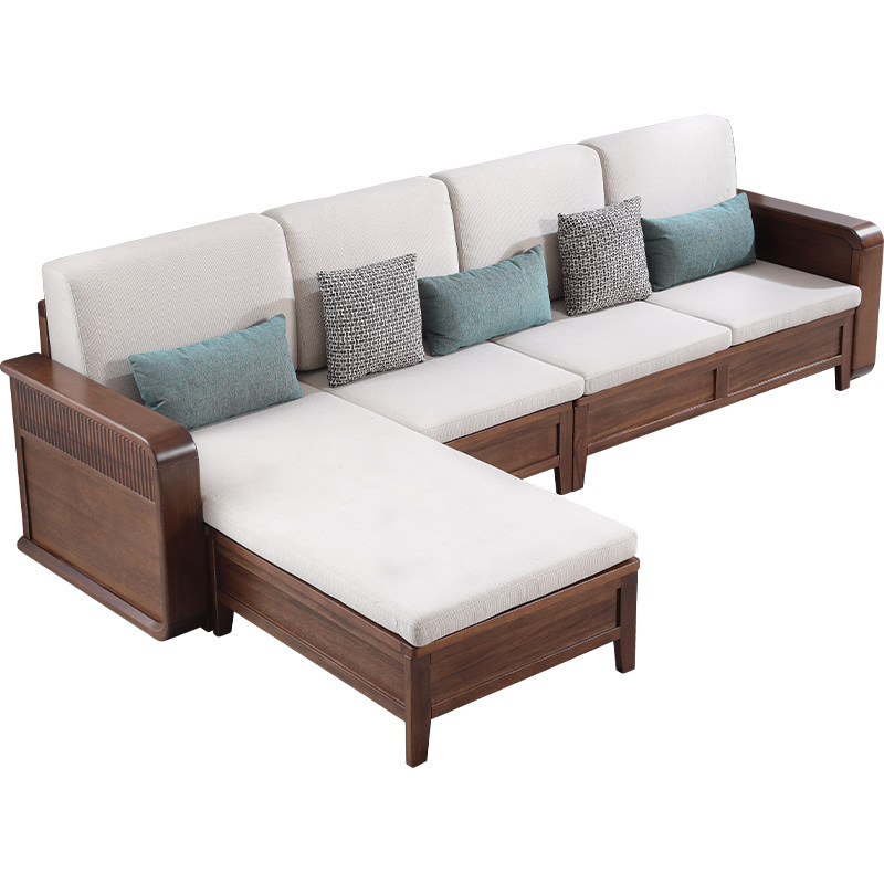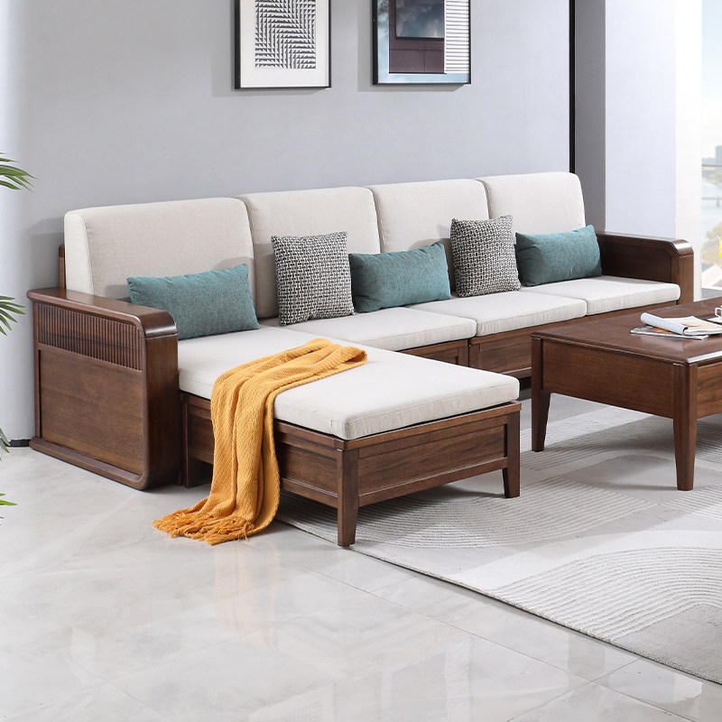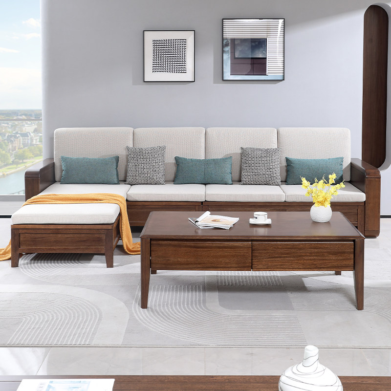 简约现代全实木沙发小户型客厅直排胡桃木四人五人位储物软靠沙发