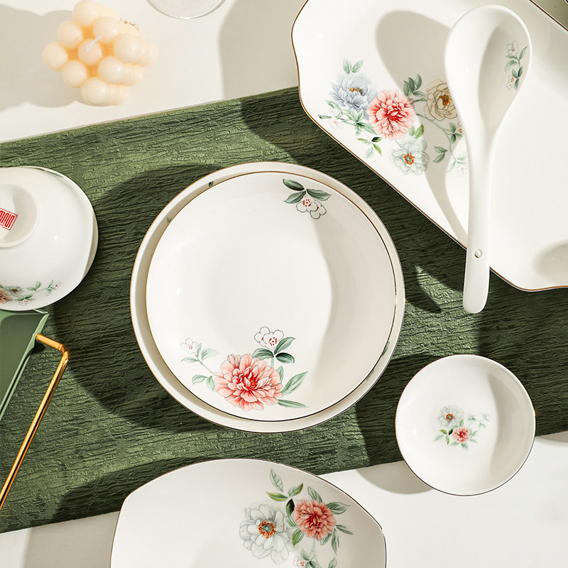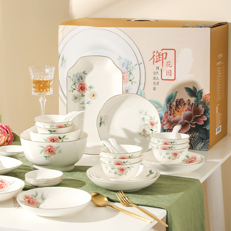 舍里中式餐具套装碗盘组合轻奢碗碟家用高档餐具乔迁餐具礼盒套装