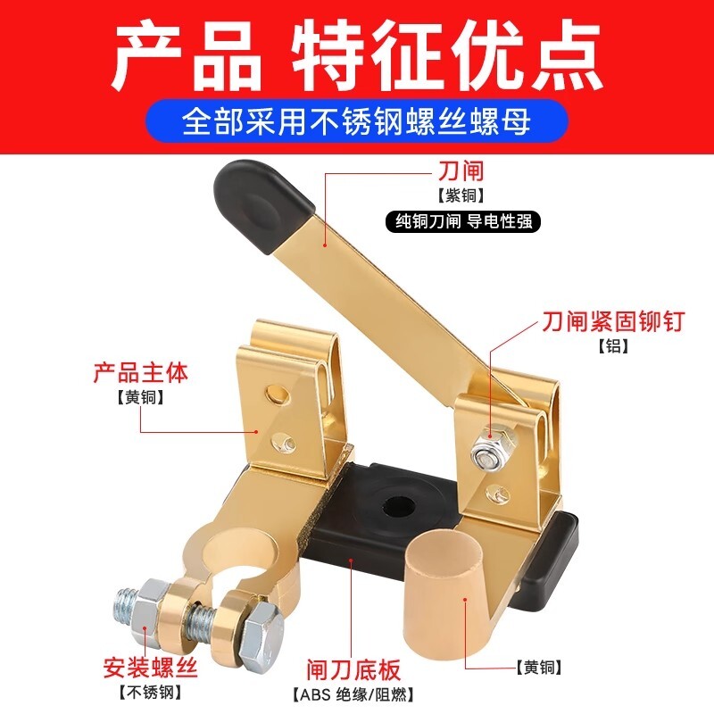 汽车电瓶断电开关纯铜正负极通用防漏闸刀防漏电改装黄铜总闸紫铜