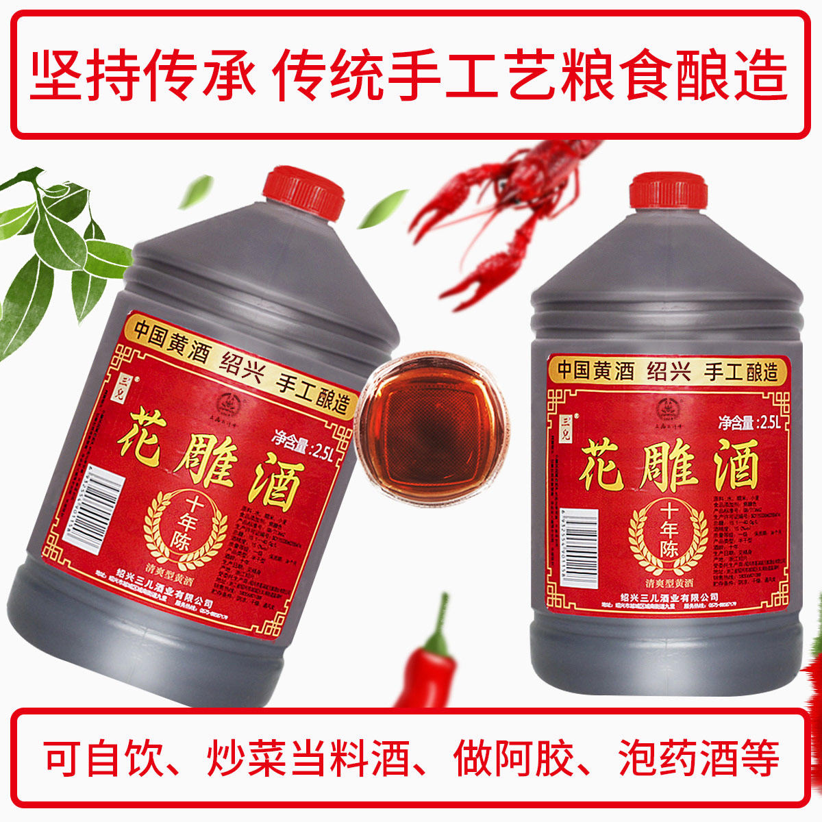 绍兴产黄酒十年陈糯米花雕酒2.5L老酒本色酒业酿酒炒菜手工焦糖色