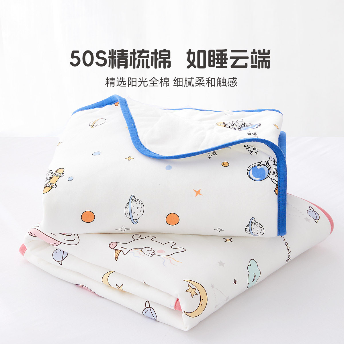 水星家纺50支全棉母婴A类抑菌低敏抱被宝宝保暖盖毯儿童床上用品