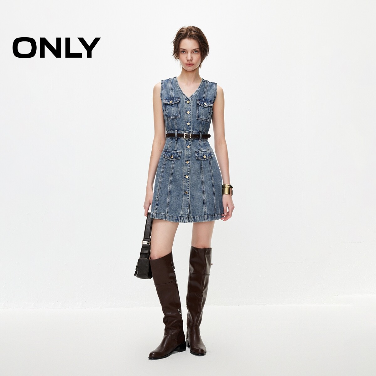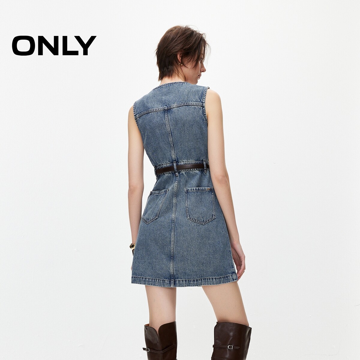 ONLY2026春季新款裙子含莱赛尔优雅风遮胯无袖短裙牛仔连衣裙女