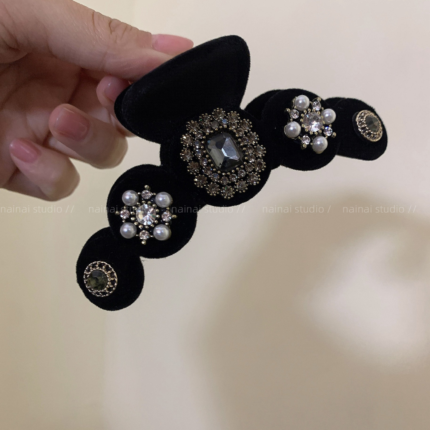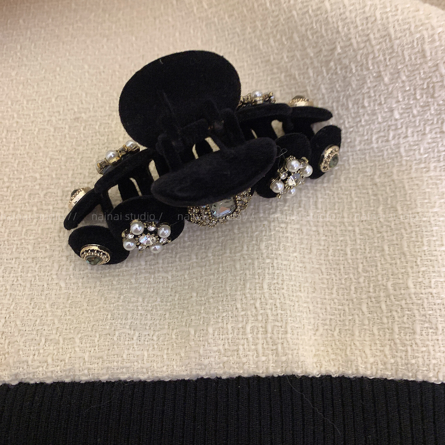 心有浪漫山海~颗颗水钻醋酸盘发抓夹蝴蝶造型鲨鱼夹半扎发抓发夹