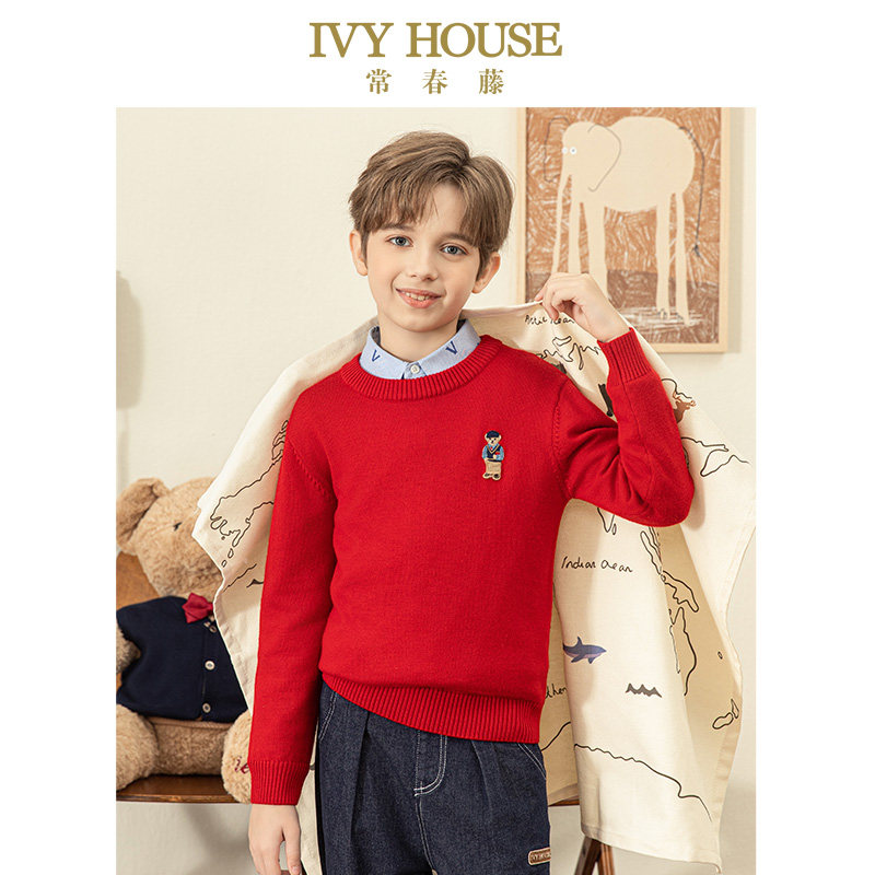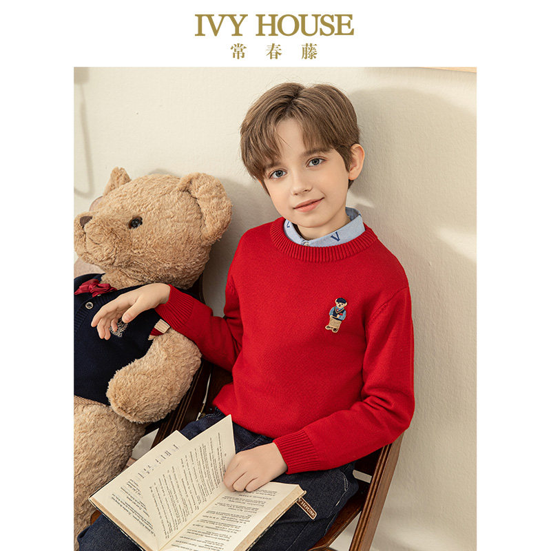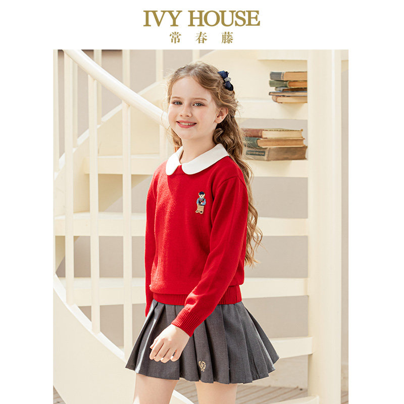 IVY HOUSE常春藤儿童装男女童冬季款 圆领绵羊毛衫毛衣保暖亲子装