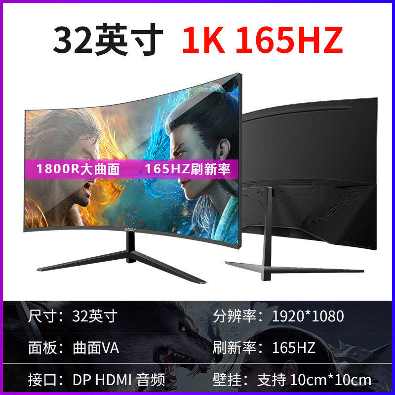 32英寸曲面电脑显示器HDMI高清144HZ台式2K电竞PS4游戏24大屏幕27