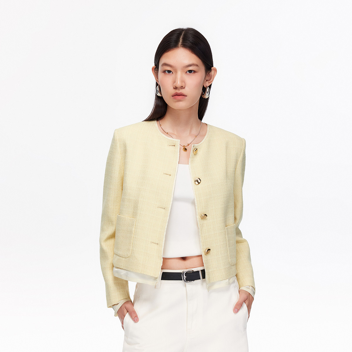 Vero Moda夹克2025秋季新款含棉圆领含垫肩小香风短外套325317041