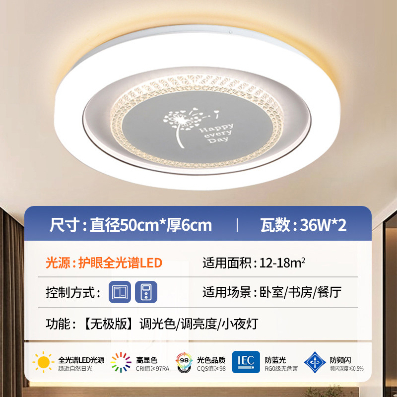 全光谱护眼吸顶灯卧室灯主卧2025年新款中山灯具现代简约房间书房