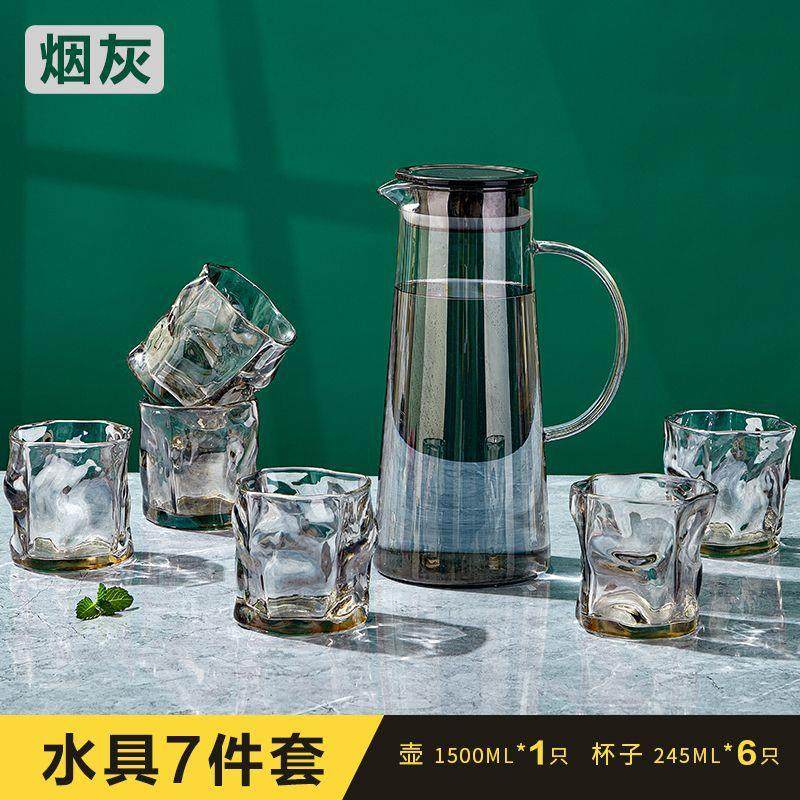 北欧风大容量耐热玻璃冷水壶喝水杯7件套凉水壶家用客厅用轻奢