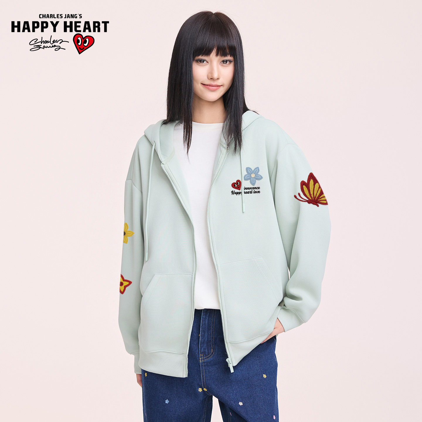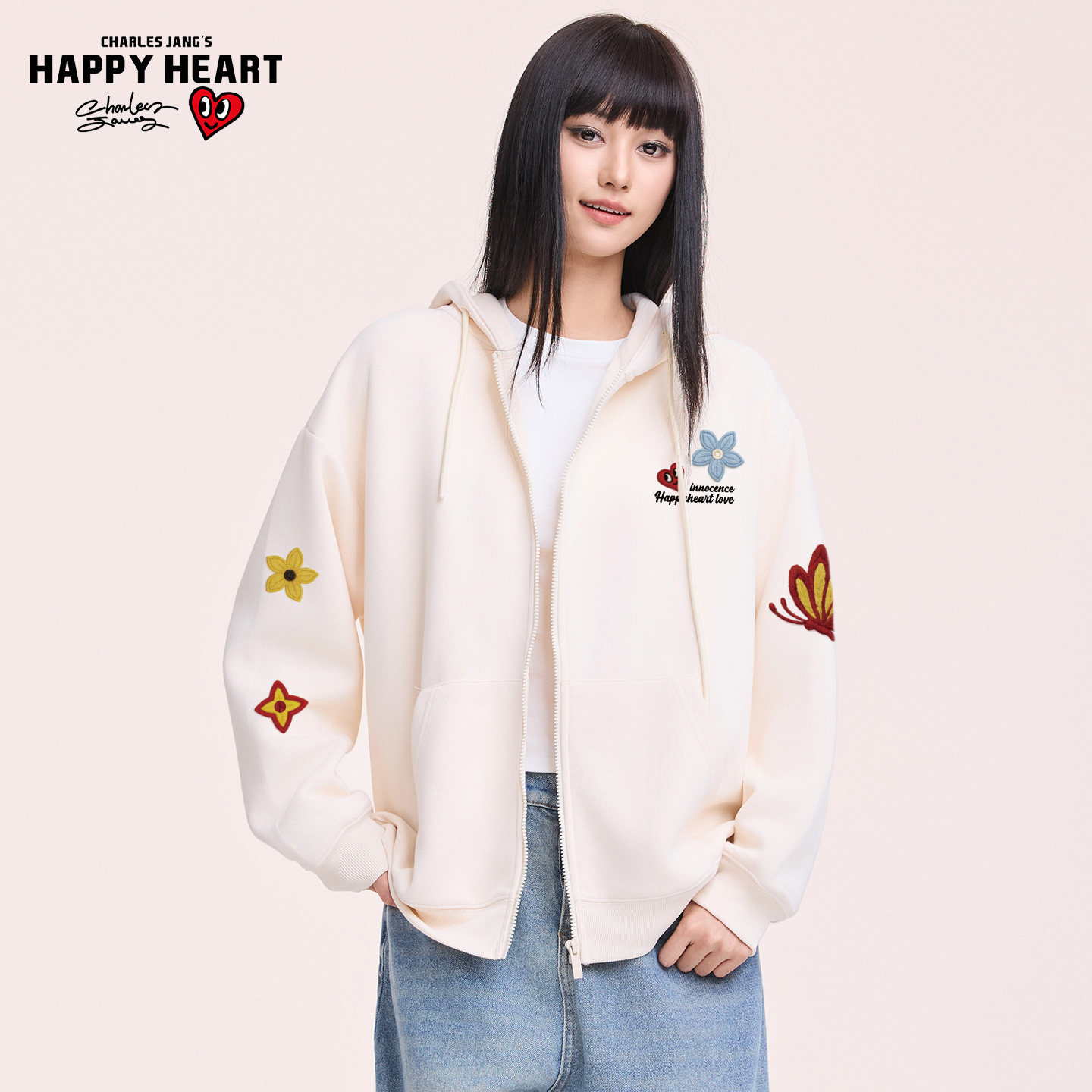 查尔斯桃心连帽开衫卫衣男秋冬季花卉蝴蝶印花宽松百搭情侣外套