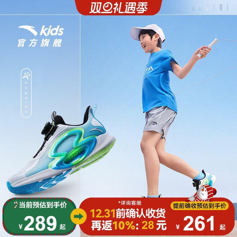 安踏儿童运动鞋男童逐月跑鞋2025秋冬新款男大童专业跑鞋纽扣鞋子