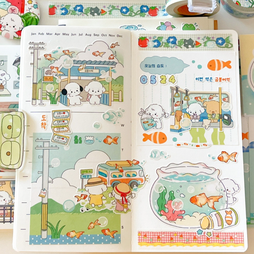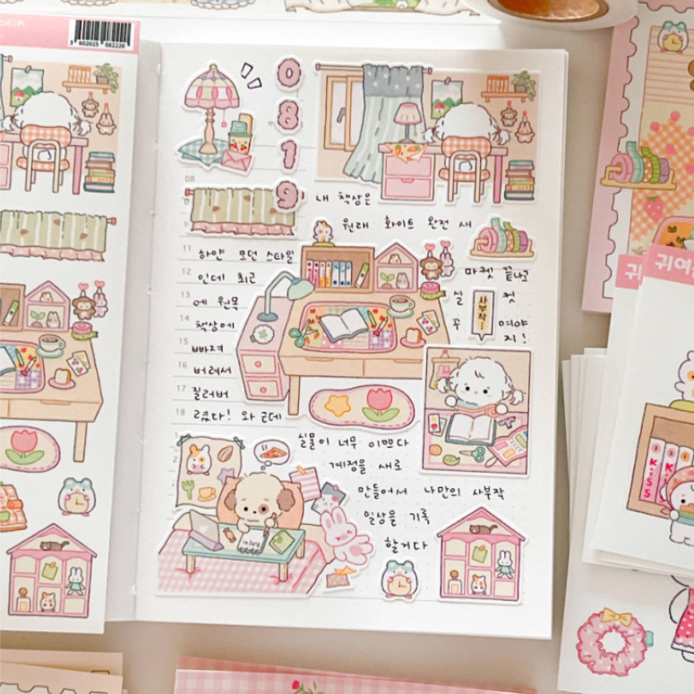 韩国mummuz棉花糖小狗咕卡手账贴居家日常标签备注日记装饰贴纸