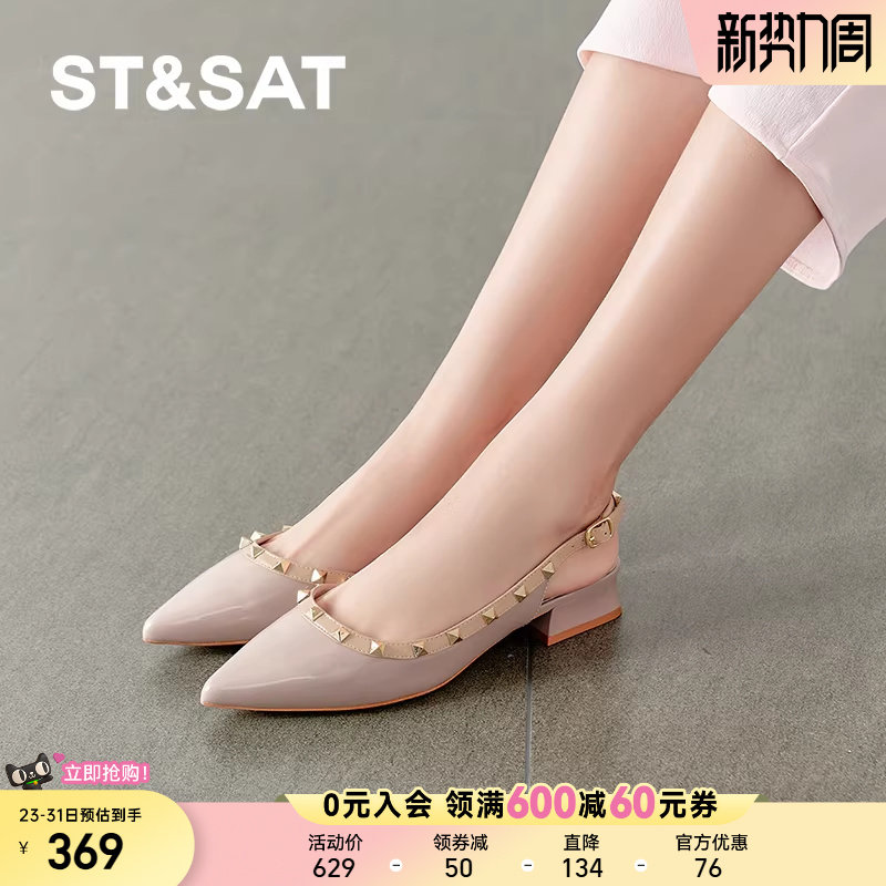 星期六爆火时尚凉鞋2025新款浅口透气铆钉单鞋低跟凉拖SSD1114466